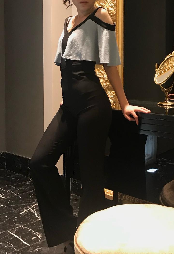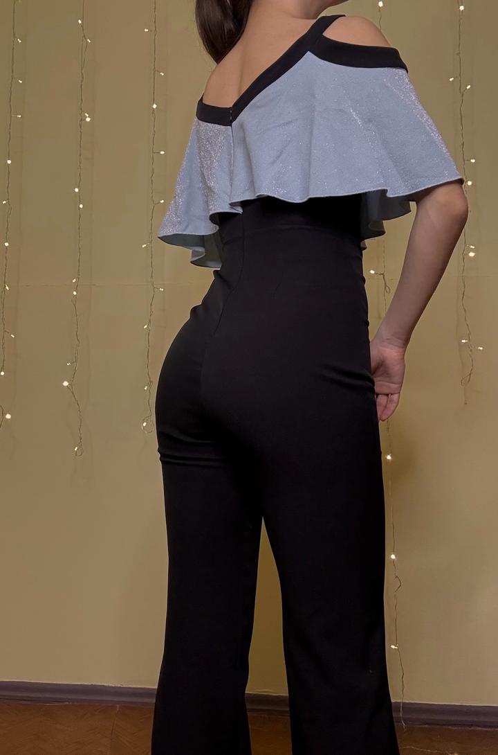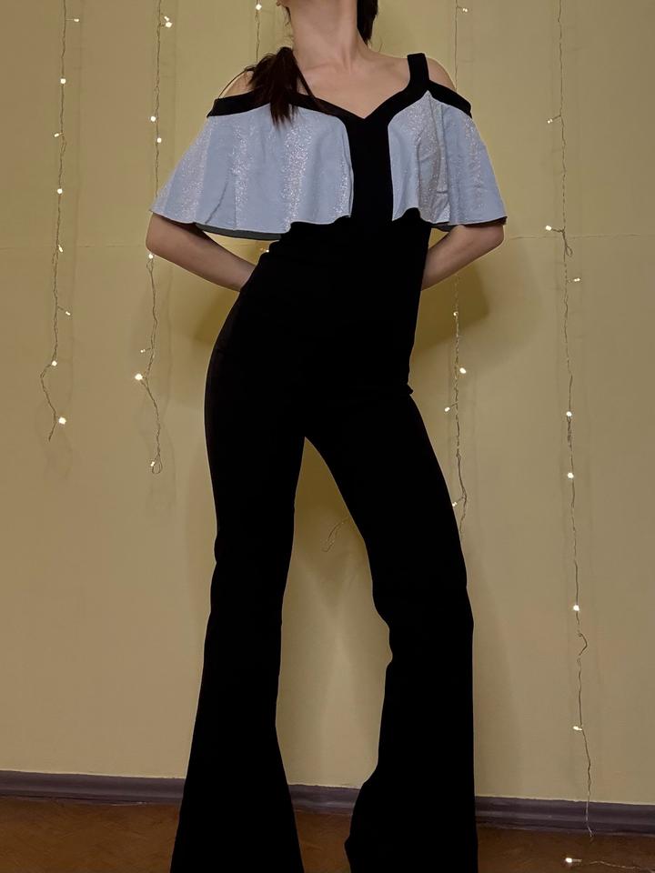 Комбинезон на выход. С блестящими вставками, клеш.S