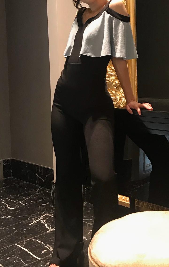 Комбинезон на выход, мне очень нравится что крой нижней части сделан под клёш, ноги таким образом вытягиваются. По фигуре сидит очень красиво, вытягивает силуэт и стройнит, выделяет попу. По талии (63) сидит хорошо, но не идеально (как на фото) Штанишки будут длинноваты, если вы ниже 1+7### ### ## ##-92. Рост 168. Артикул: 516005