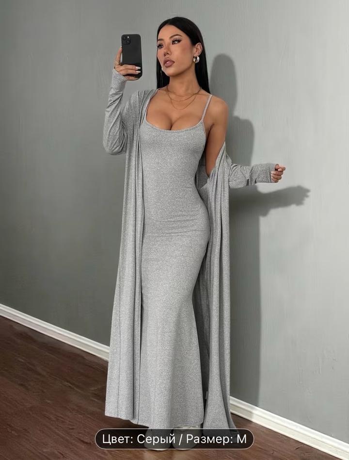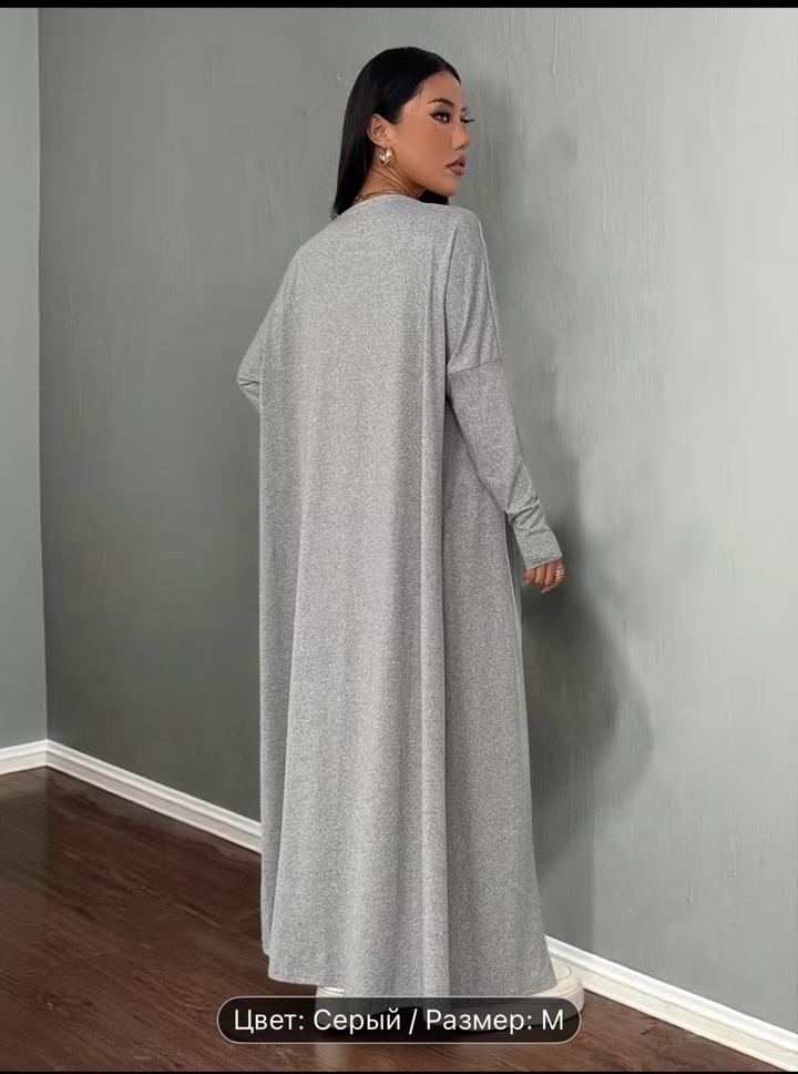 Серое платье и накидка из вискозы и полиэстера. Отлично подойдет на каждый день. Подойдет на рост 165 и выше. В новом состоянии, по длине не подошло. Размер М Артикул: 516043