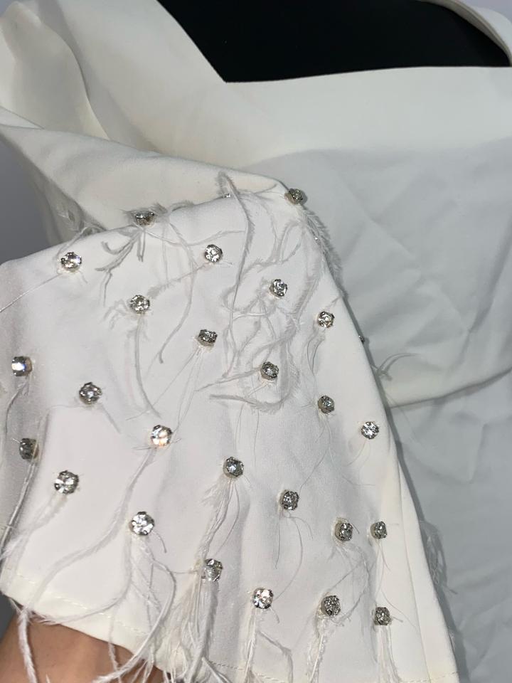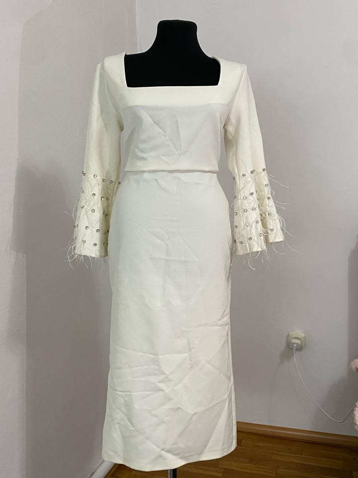 Белое, вечернее, летнее платье с перьями на рукавах. Носилось пару раз. Размер 40/S. Артикул: 516054