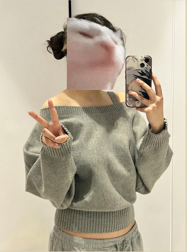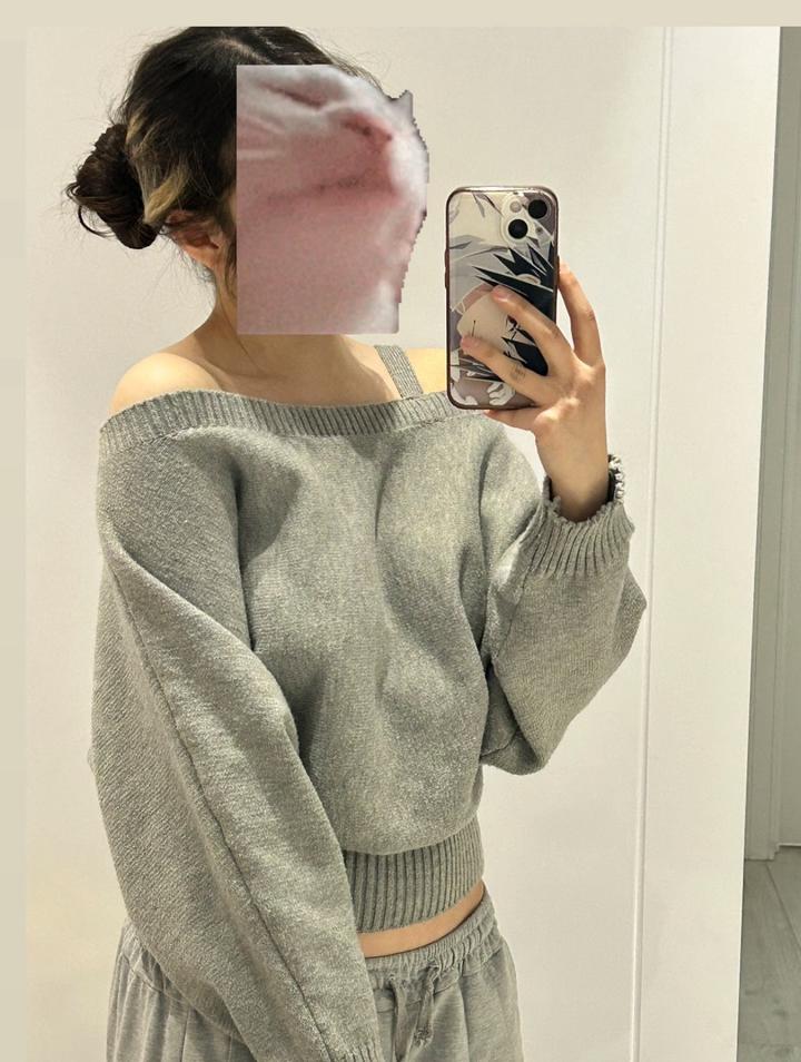 серая кофта без плеча Артикул: 516117