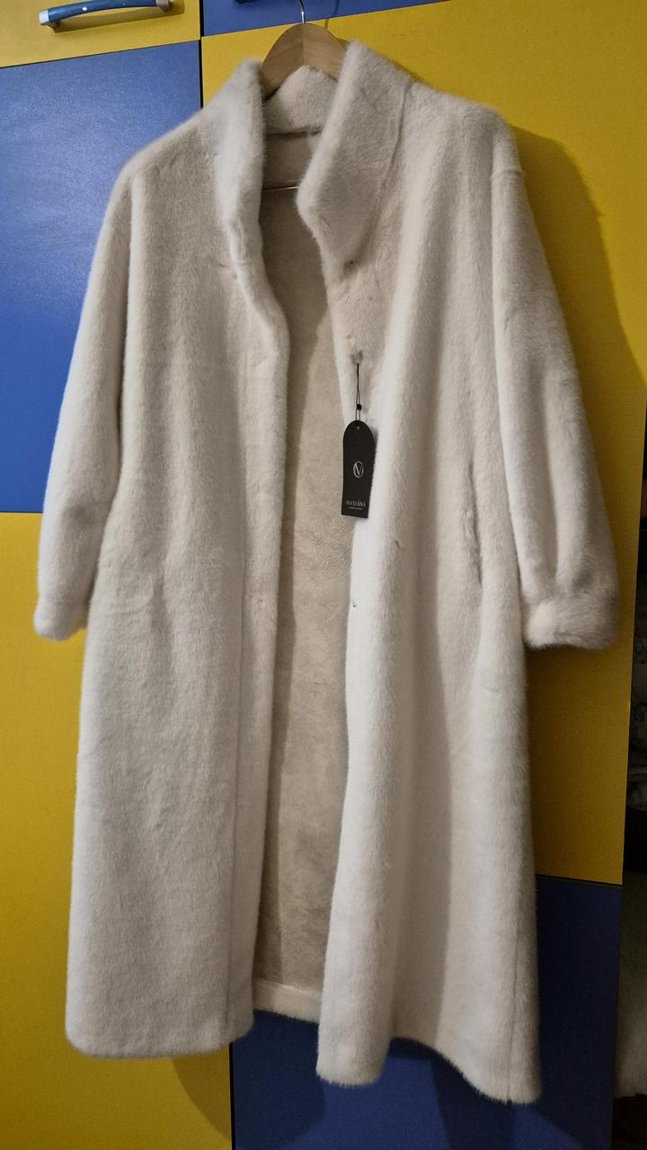 Пальто, или экошубка на весну от Mariana wear. Абсолютно новая. Mех потоньше , чем обычные зимние. Швы аккуратные. Размер 44. Цвет нежный ,белый крем. Подарили, не подошел размер. Артикул: 516124