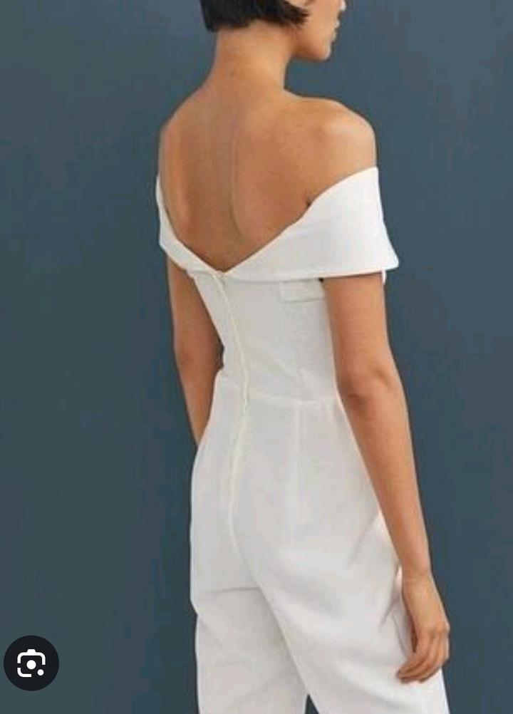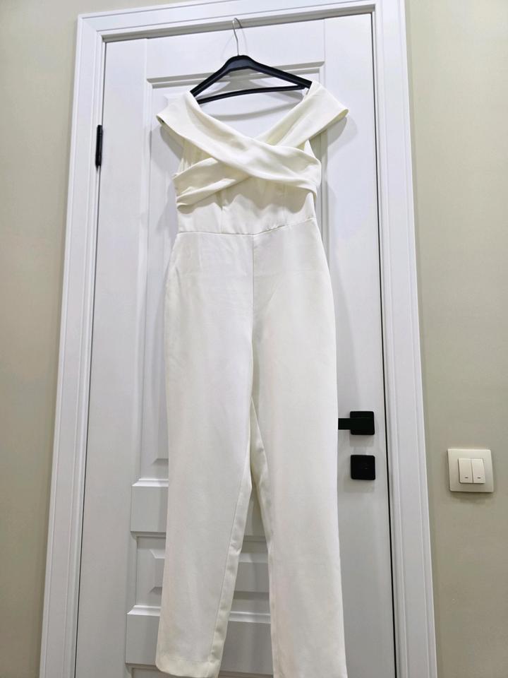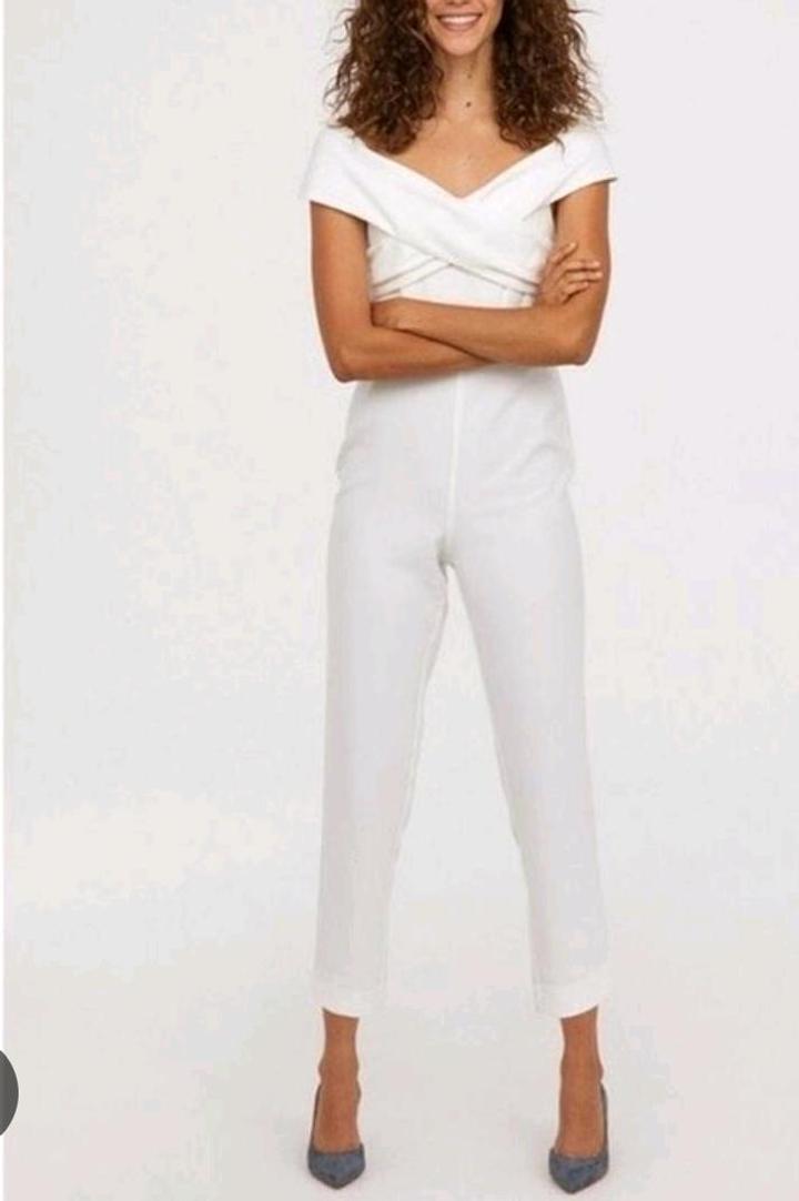 ильный комбинезон в светлом оттенке от H&M. Верх с перекрёстным дизайном и открытыми плечами красиво подчёркивает зону декольте и делает образ женственным и утончённым. Приталенный силуэт с акцентом на талии визуально стройнит, а прямые брюки создают вытянутый, стройный силуэт. Отличный вариант для праздничных мероприятий Артикул: 516126