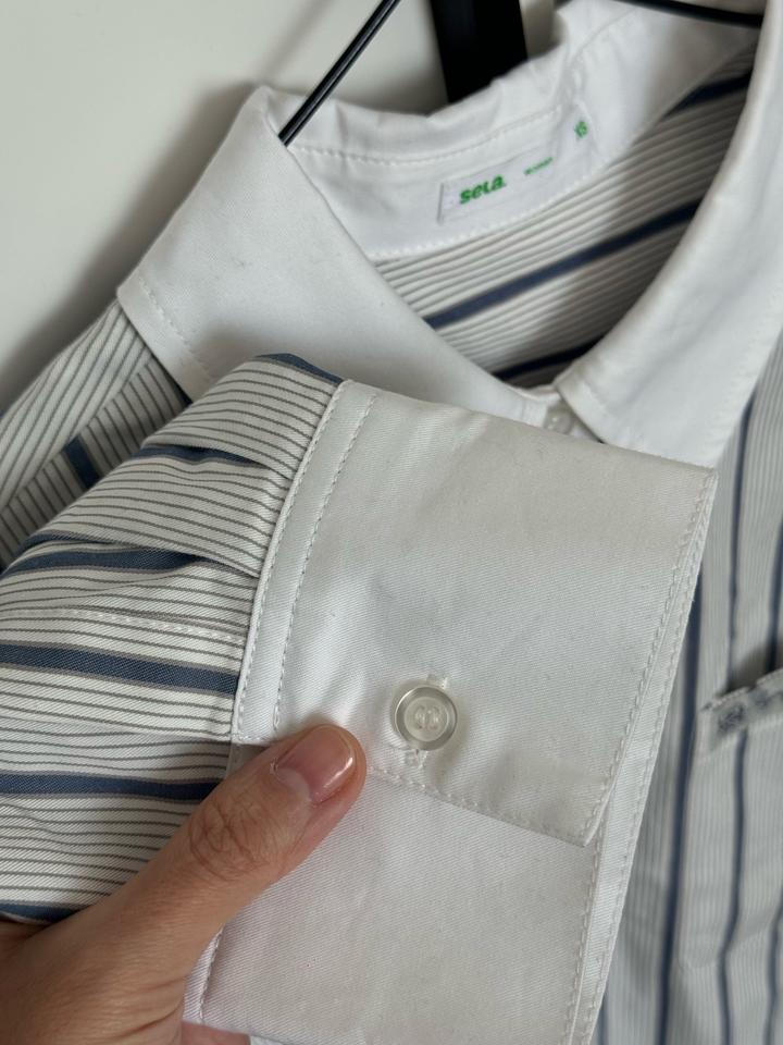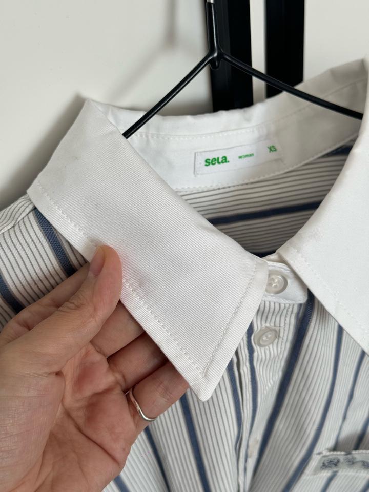 Рубашка от SELA. Надела только 1 раз. Размер оверсайз(свободная), подойдет на xs-s-m и возможно даже на L(будет сидеть ни сильно свободно просто). Вертикальные полоски отлично стройнят. Материал: плотный хлопок. Не мнется сильно. Артикул: 516194