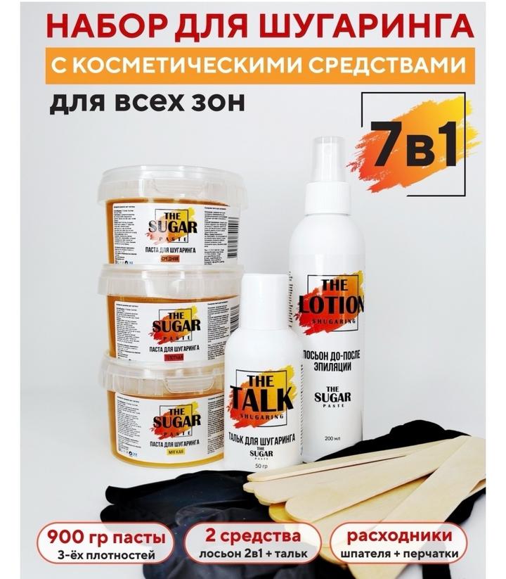 Набор Sugarlife тальк, перчатки, лосьон до депиляции, шпатель, паста для шугаринга. 3 вида пасты, тальк, лосьон посе депиляции, шпатели. Использовала чуть чуть одну пасту, а так всё новое, всё полное. Мне не подошло Артикул: 516213
