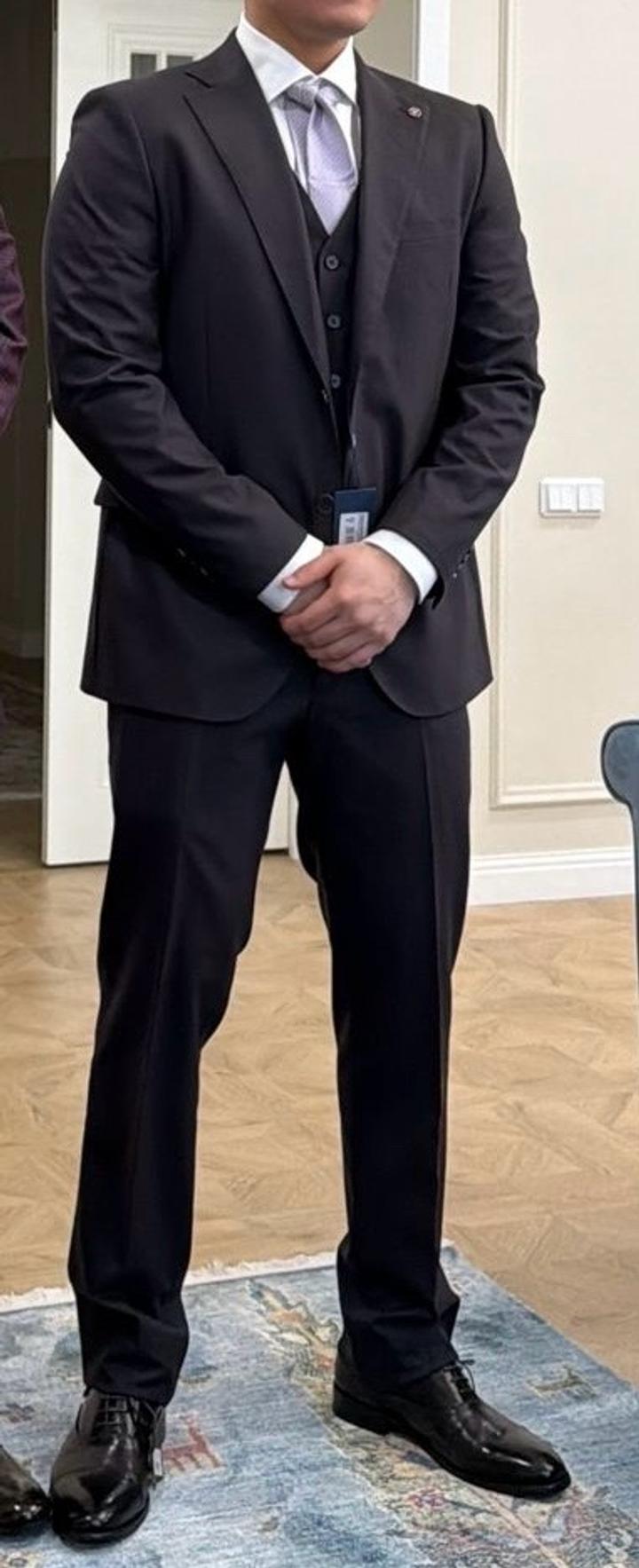 Мужской костюм тройка темно- коричневого цвета- жилет, пиджак, брюки. Новый с биркой. Сидит отлично. Размер брюк и жилета - 52 Размер пиджака - 50. Артикул: 516264