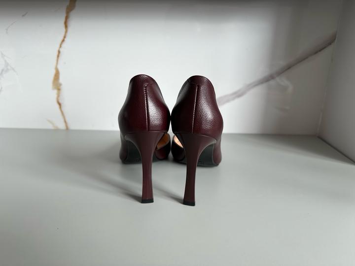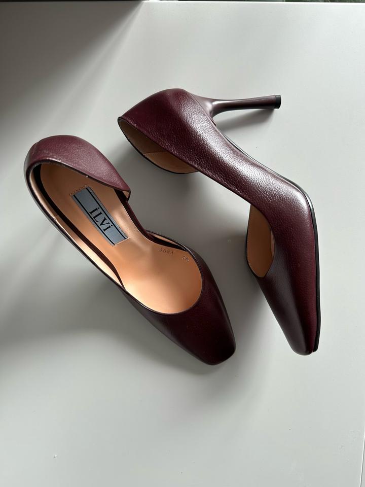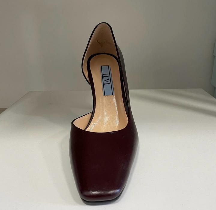 Новые туфли фирмы ILVI MILANO. Натуральная телячья кожа. 9 см каблук. 36 размер . Размер в размер. Удобная колодка . Квадратный мыс. Оттенок темно-бордовый. Темно винный оттенок. Фото без фильтра. Артикул: 516324