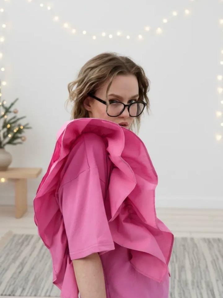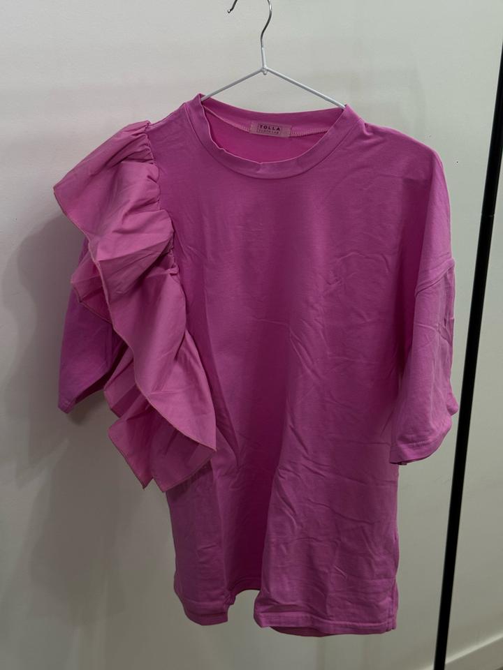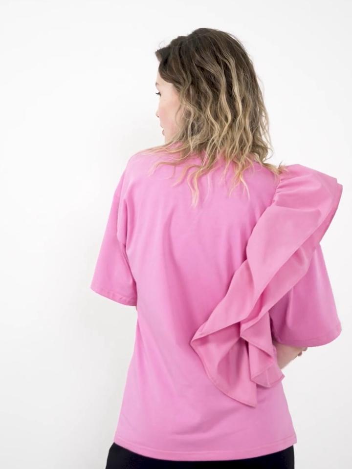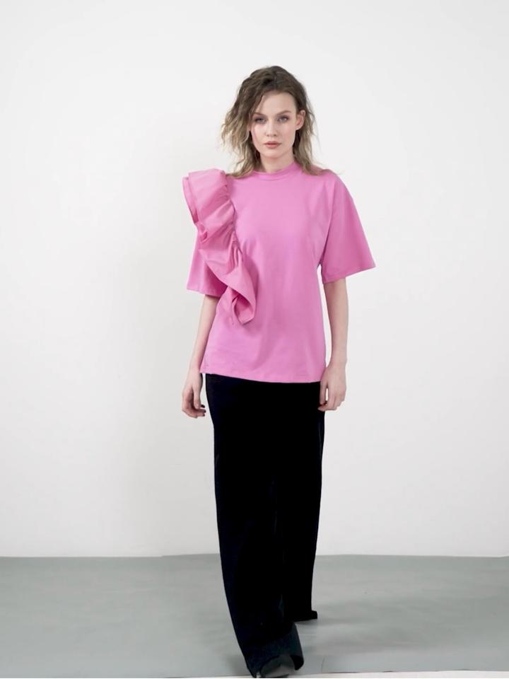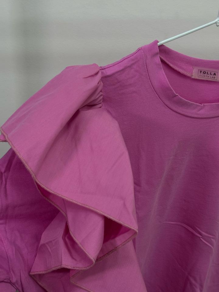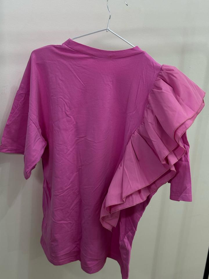 Футболка с акцентым воланом Добавит вашему образу праздничный акцент Размер-М Артикул: 516388