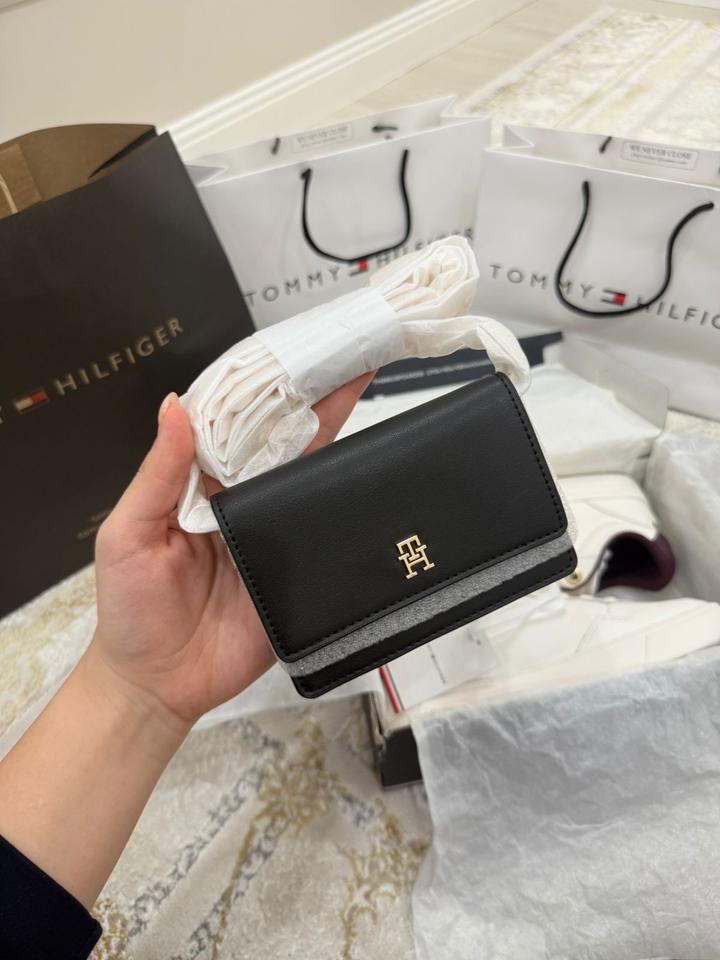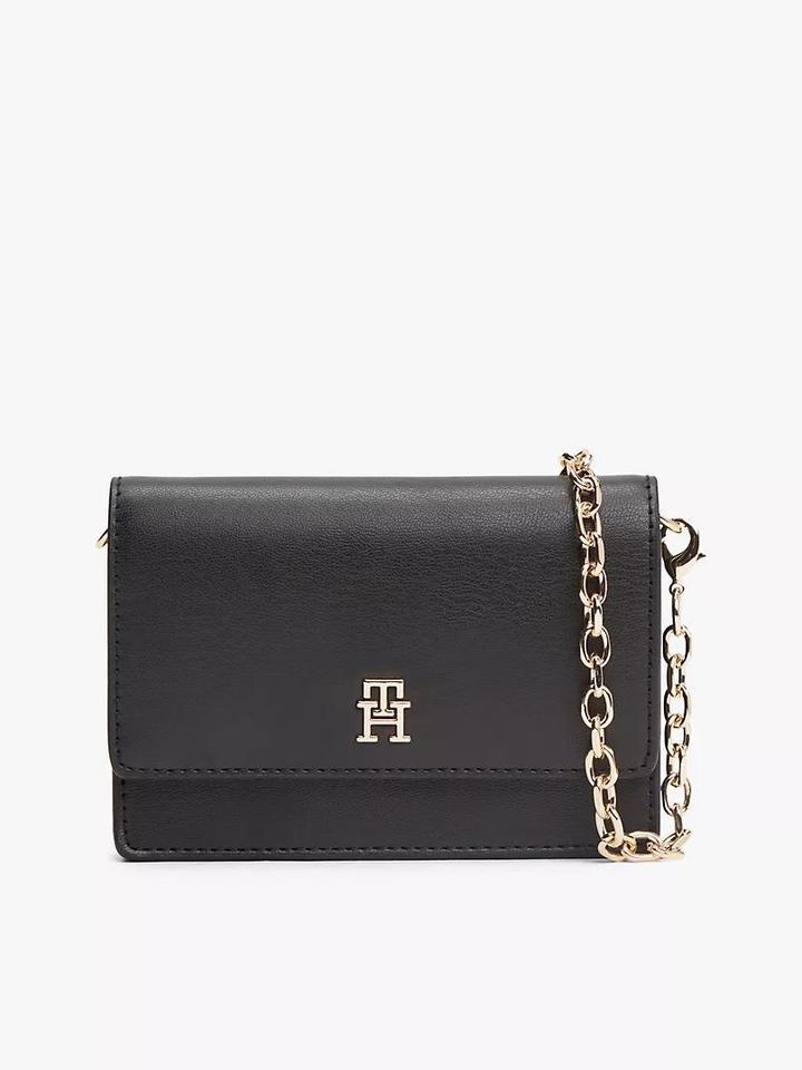 Клапан с магнитной застежкой, съемный ремешок-цепочка, внутренние слоты для карт, монограмма TH спереди. Артикул: 516505
