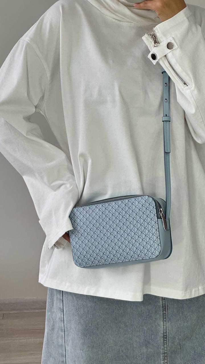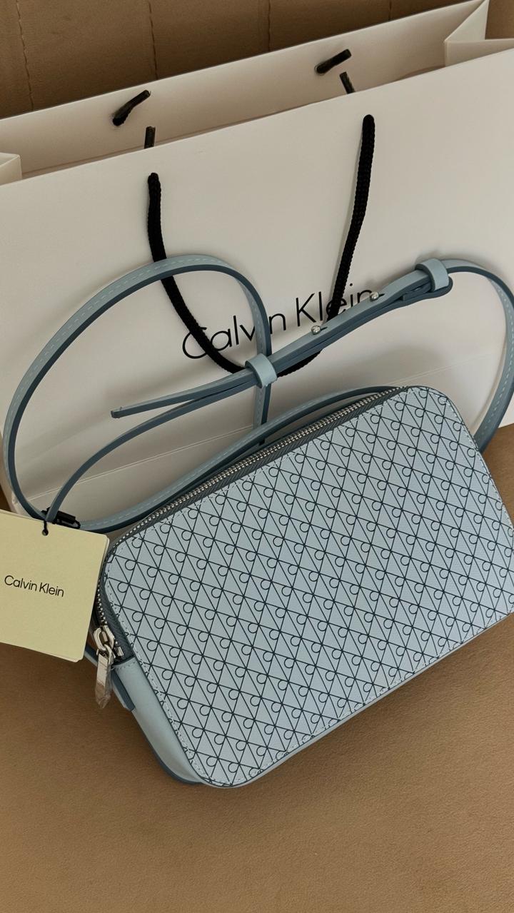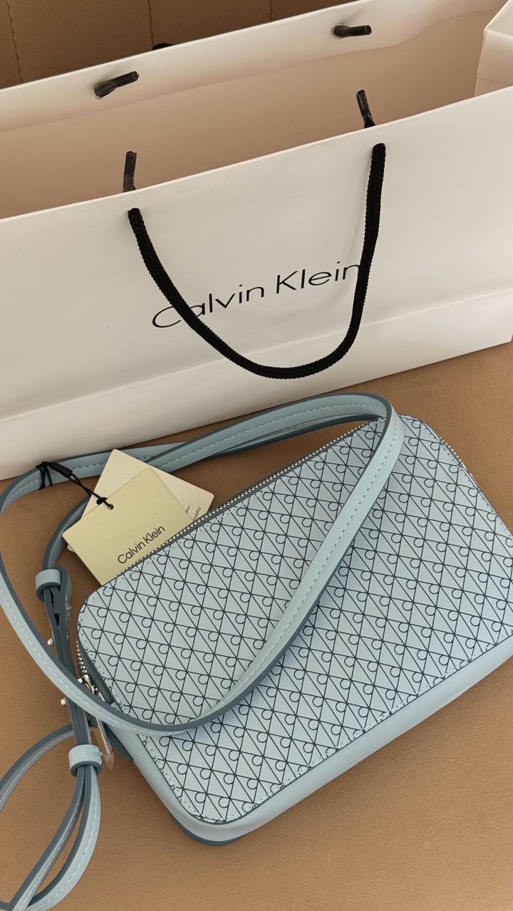Новый кроссбоди с бирками Calvin Klein, новый дизайн монограмма. Цвет нежно голубой, вместительная. Привезен из Америки Артикул: 516506