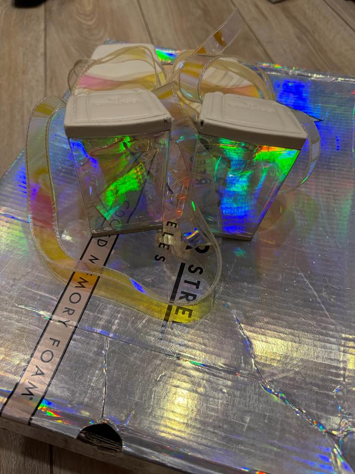 Классные, неоновые, удобные, несмотря на необычную форму каблука, устойчивые. Есть дефект, на фото видно. На ноге в глаза абсолютно не бросается Артикул: 516519