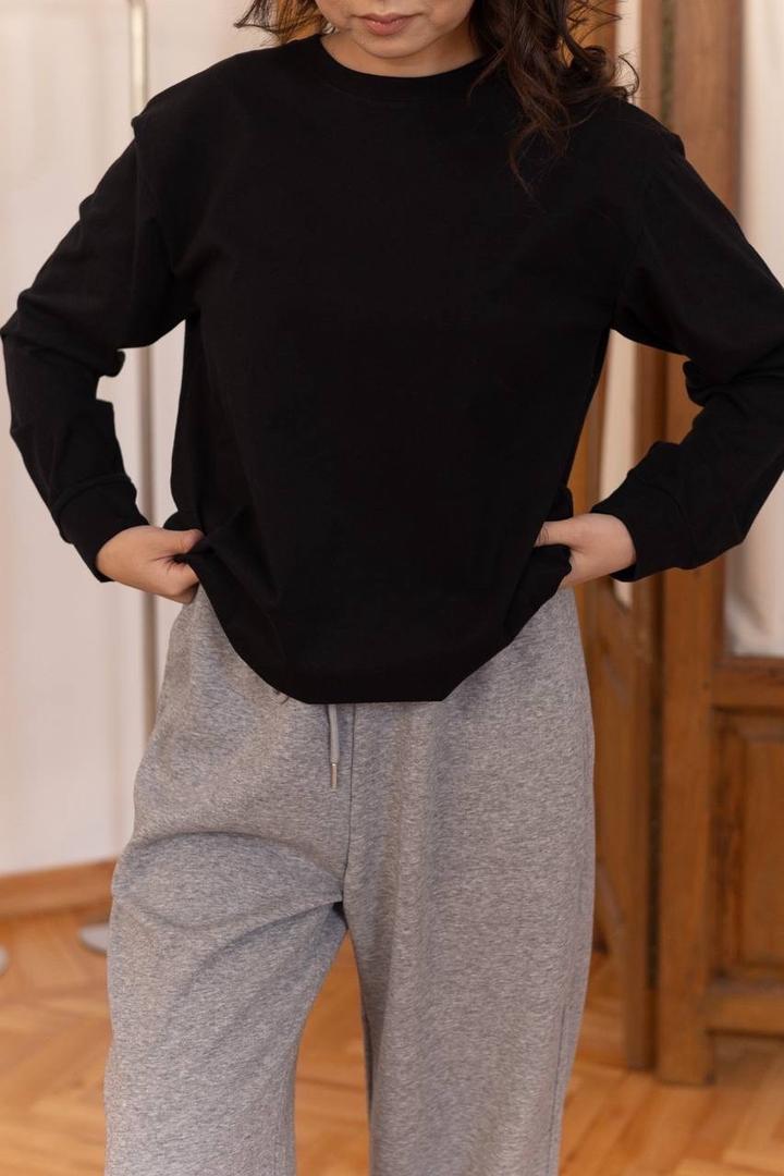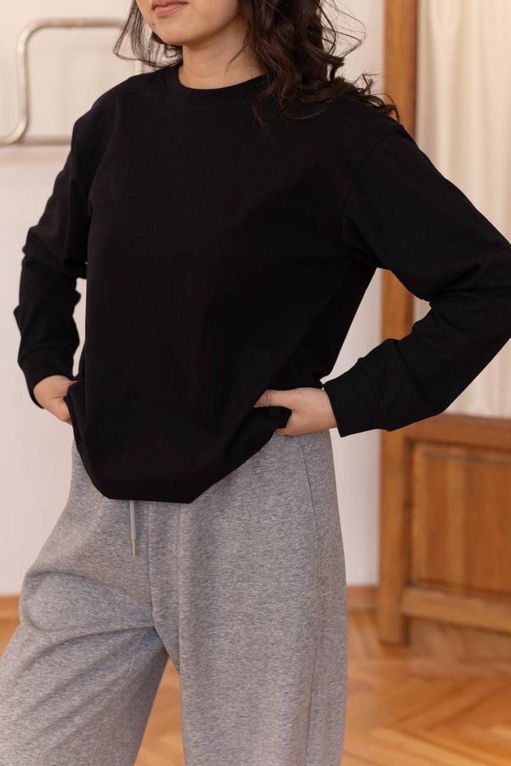 Черного цвета лонгслив из хлопка высокого качества Артикул: 516601