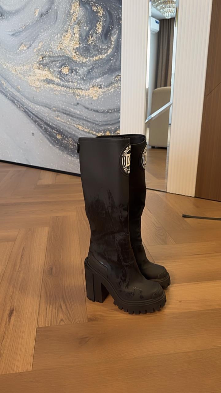 Резиновые сапоги Dolce & Gabbana — это сочетание премиального качества, высокой практичности и узнаваемого итальянского стиля. Они изготавливаются из водонепроницаемой резины, часто украшены фирменным логотипом, пряжками, имеют удобную толстую подошву с протектором для защиты от скольжения. Это долговечная обувь для непогоды в люкс-сегменте. Артикул: 516614