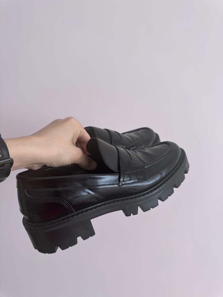 Продам кожаные классические лоферы Massimo Dutti. Базовая черная обувь, которая всегда должна быть в гардеробе, размер 37, длина стельки 24см. Носились пару раз в офисе, к сожалению, изначально оказались великоваты. Артикул: 516785