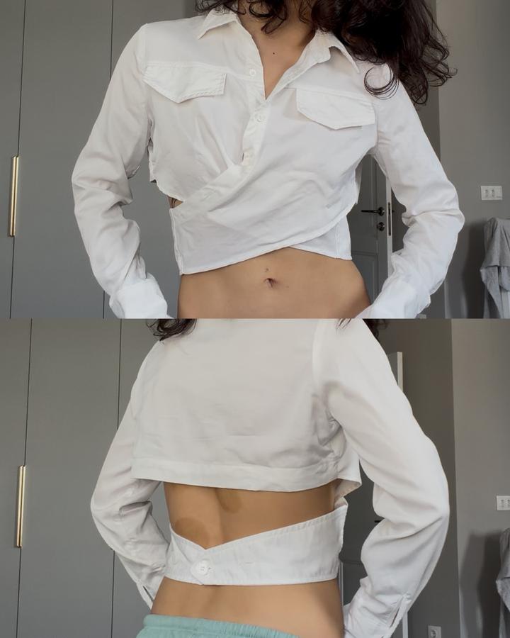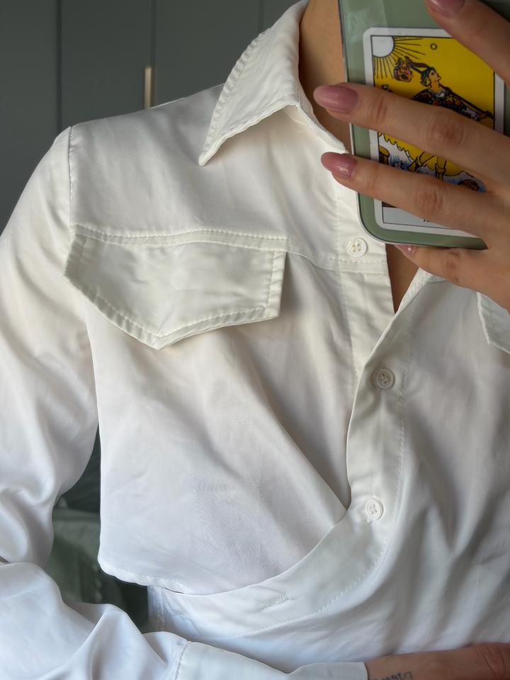 Рубашка без бренда. Из магазина Purple. Есть несколько вариантов носки наглядно на фото, кроп-рубашка. В хорошем состоянии! Без дефектов. Покупала в магазине Purple На размер S, Артикул: 516869
