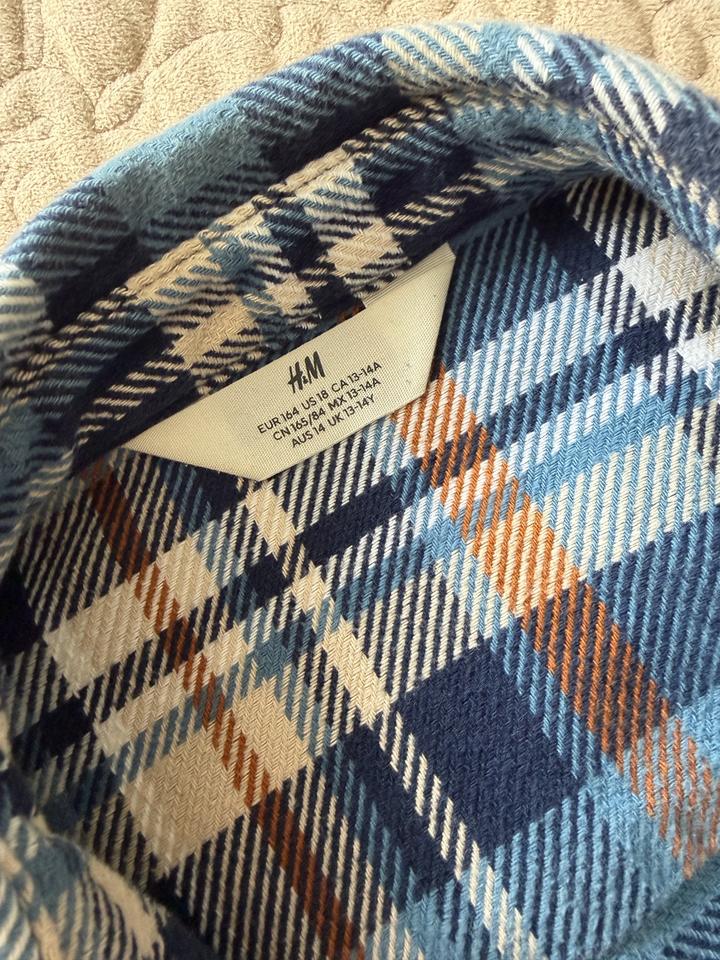 Теплая и стильная рубашка на подростка в очень хорошем состоянии. Все кнопки рабочие. Два кармана на груди. Артикул: 516897