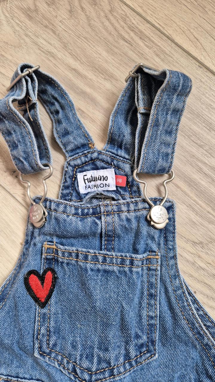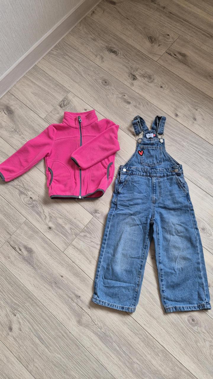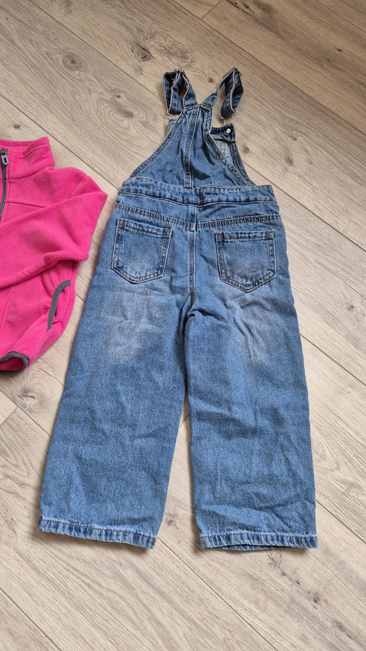 Комбинезон джинсовый для девочки , размер 98 см. Бренд Futurino , детский мир. В хорошем состоянии. В подарок флисовая обычная кофточка на замке. Размер поменьше будет 28 см это на 2-3 года. У кофточки есть небольшие пятна спереди. Цена за комбинезон, кофточка в подарок. Артикул: 516948