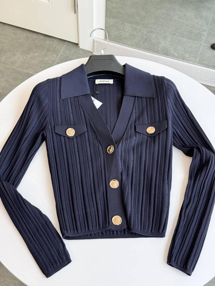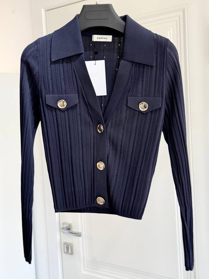 Sandro Насыщенный темно-синий цвет и эластичный трикотажный материал в рубчик обеспечивают комфорт и элегантный вид. Размер XS Новое Мы бутик Veentazh занимаемся только оригинальными товарами. Артикул: 517083