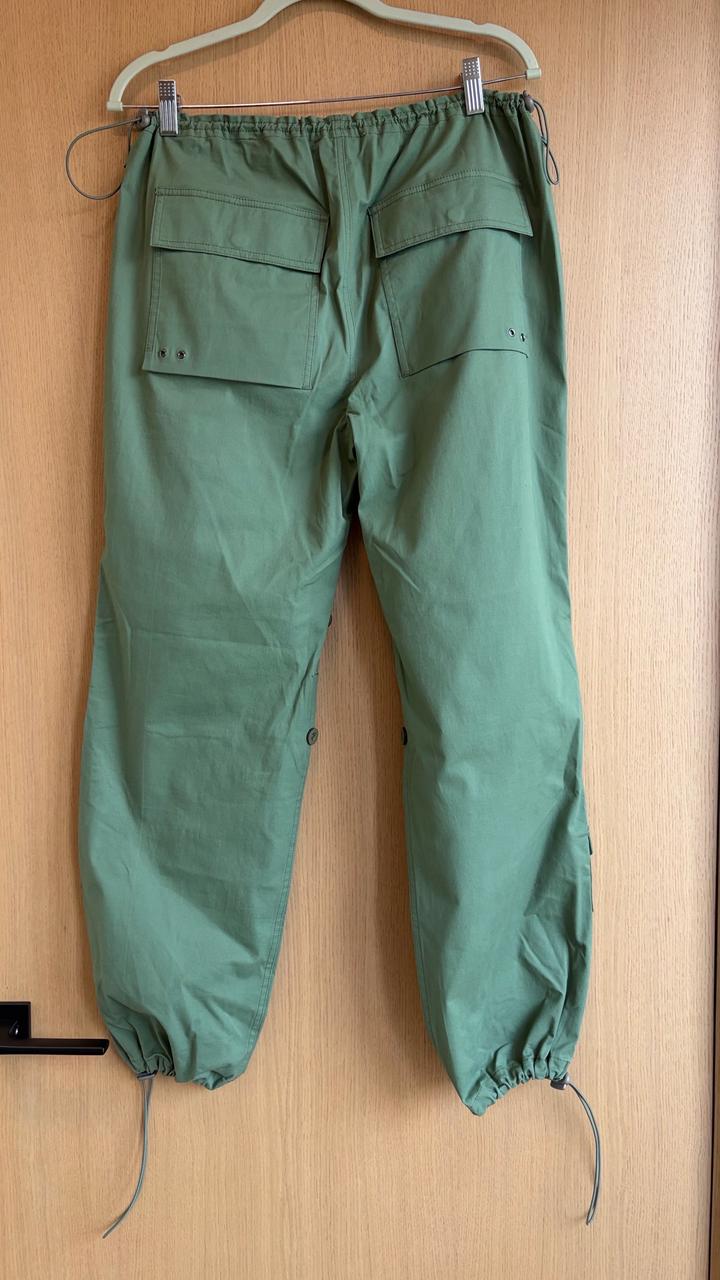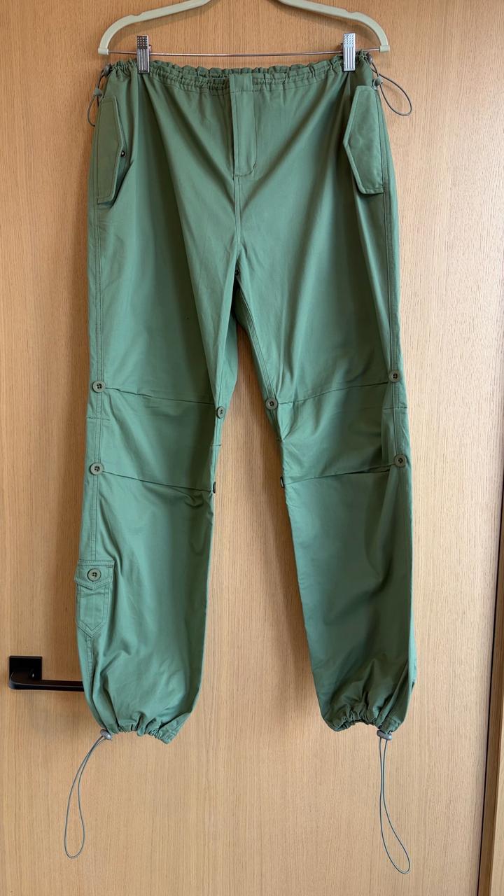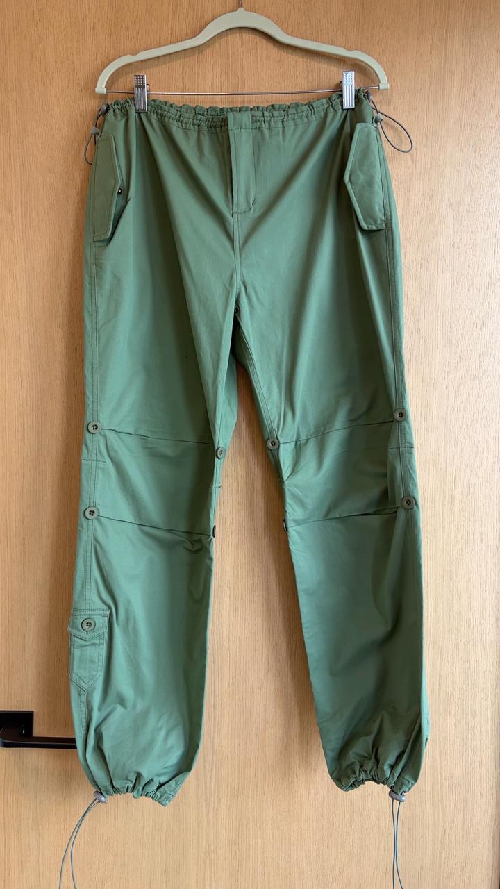 Карго-брюки в приглушённом оливково-зелёном оттенке — идеальный баланс утилитарности и актуального силуэта. Модель с низкой/средней посадкой и расслабленным прямым кроем, который можно трансформировать за счёт кулисок внизу. Функциональные детали: — объёмные карго-карманы по бокам — дополнительные задние карманы с клапанами — регулируемые кулиски на талии и по низу брючин — декоративные швы и сегментированные колени пояс 47 см без резинки внут шов 71 см бедра 52 Артикул: 517372