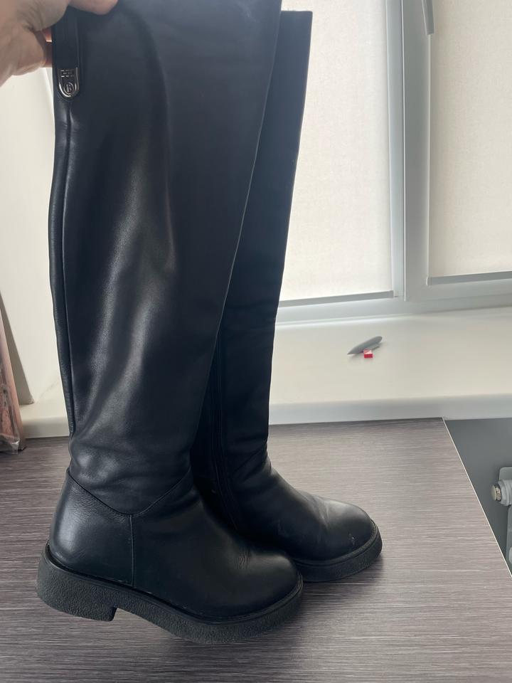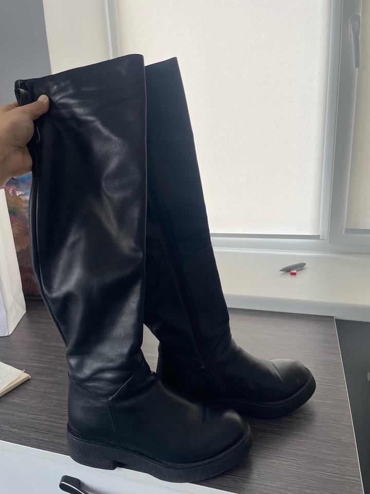 Черные кожаные ботфорты 36 размера. Натуральная кожа, турция, покупала когда-то за 55000. В хорошем состоянии, носилось редко, так как берегла. Нога выросла, не могу носить Артикул: 517402