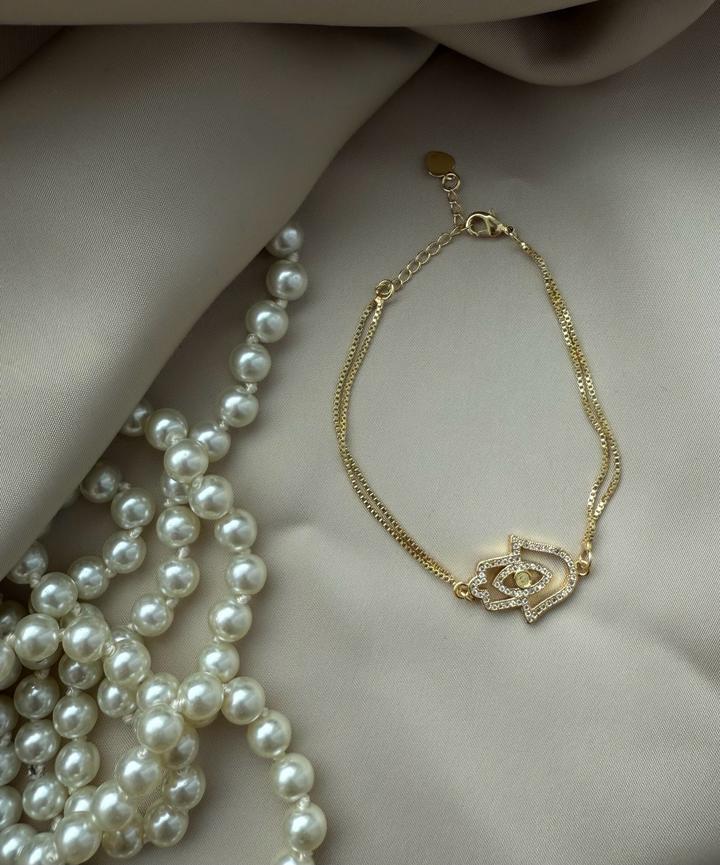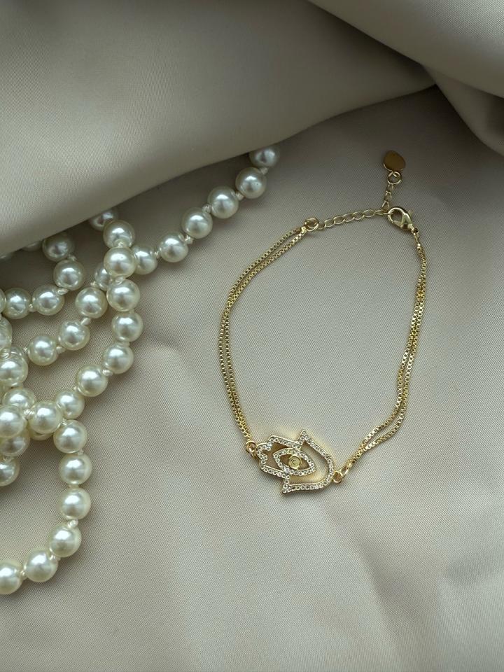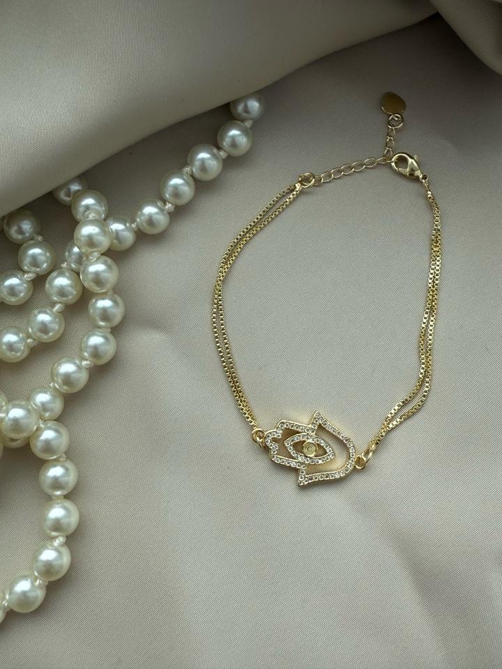 Браслет «Хамса» на тонком двойном ремешке Застежка карабин (регулируется) материал Латунь покрытие позолота Вставки -фианиты Упакован в мешочек пыльник и пакетик🩷 Артикул: 517405