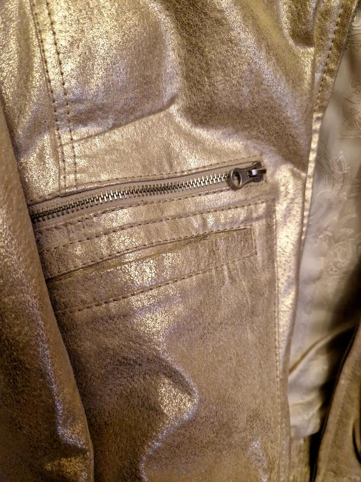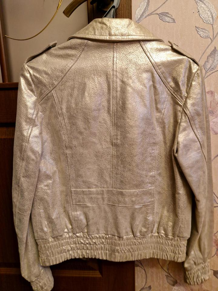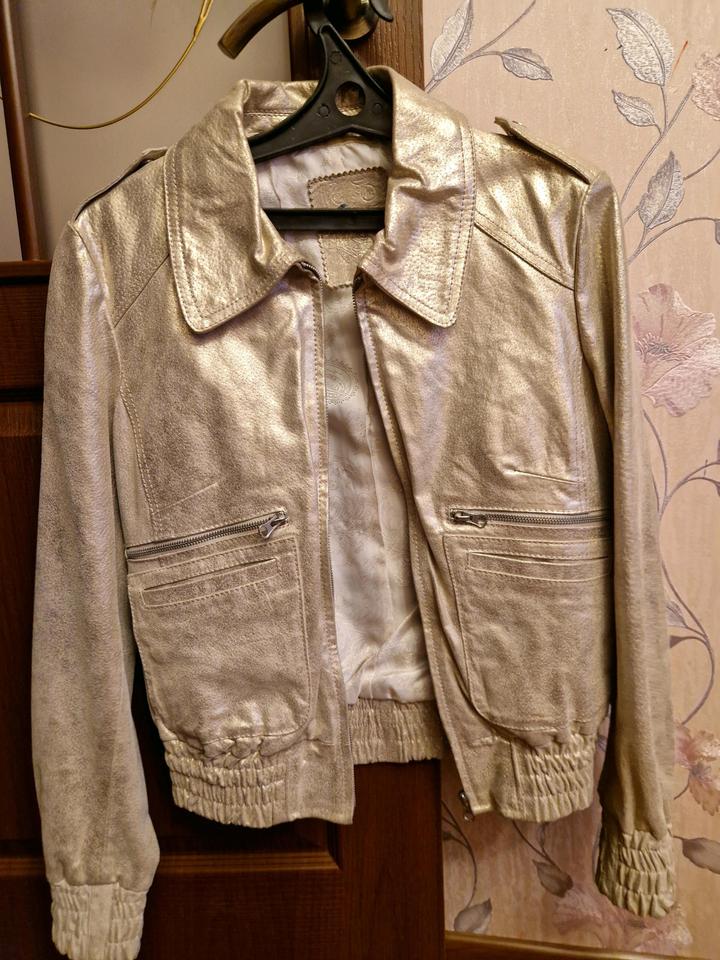 кожаная куртка, нежно золотого цвета. подойдёт на s-m в отличном состоянии осень, весна Артикул: 517442