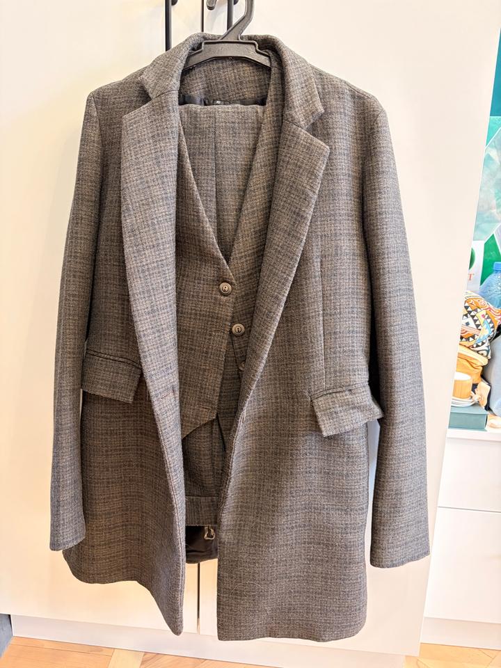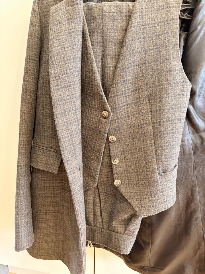 Костюм-тройка White Flower (пиджак + жилет + брюки), XS Очень красивый и собранный костюм-тройка в серо-коричневом оттенке с деликатной фактурой. Выглядит элегантно и дорого, при этом легко стилизуется — можно носить как комплектом, так и по отдельности. Идеальный баланс классики и современного силуэта: структурный пиджак, аккуратный жилет и прямые брюки с хорошей посадкой. Надевался 3–4 раза. Состояние отличное, без нюансов. 💛 Размер: XS 💛 Универсальный оттенок (подходит под всё) 💛 Отлично Артикул: 517510