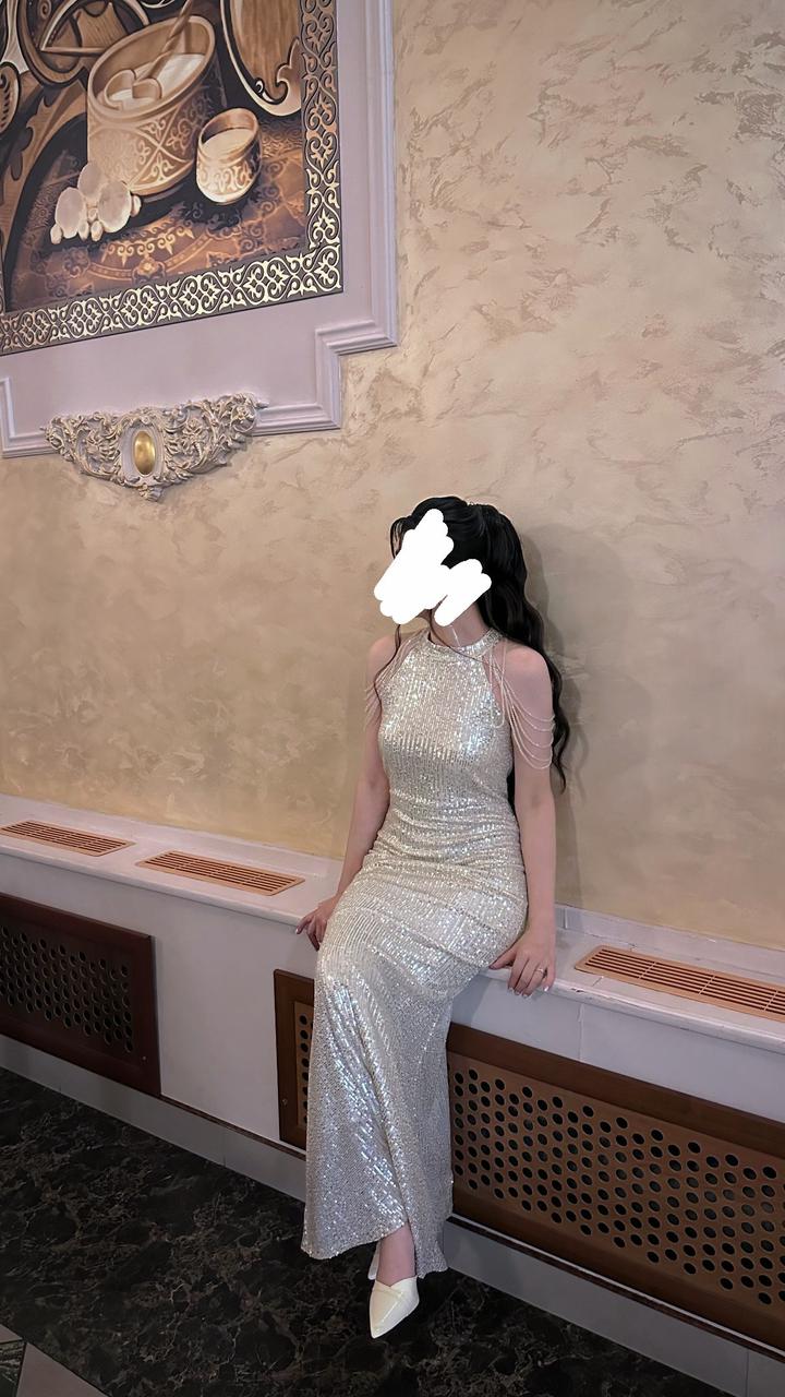 Элегантное длинное вечернее платье ✨ Роскошная модель с эффектным кроем «рыбий хвост», которая красиво подчёркивает фигуру и талию. Плечи украшены изящными бусинами, а золотые кисточки добавляют платью особый шарм и блеск. Ткань красиво переливается и смотрится очень нарядно. Платье идеально подойдёт для торжества, праздника, свадьбы или фотосессии. Очень женственное и эффектное платье, в котором вы точно будете в центре внимания 💫 Артикул: 517542