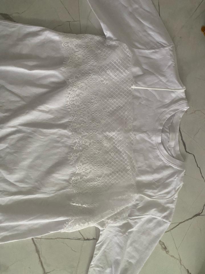 Белый лонгслив из юникло, новый без бирок. Ткань мягкая, размер М, свободный крой. Кружево пришито. Артикул: 517607