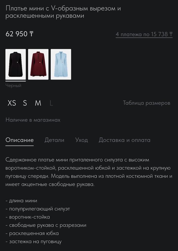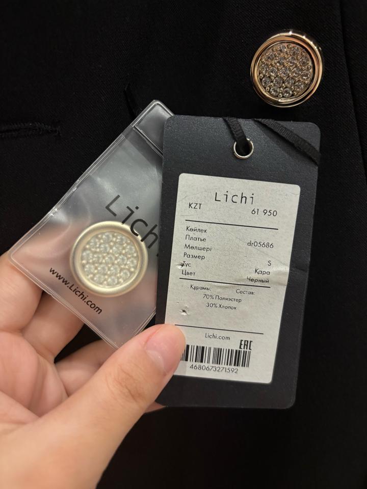 Черное платье от бренда Lichi, покупала за 62 тысячи, не надевалось, только примерила. Был приобетен в официальном бутике в Меге Алматы. Бирка и запасная булавка тоже имеется. Качество очень хорошее, платье в размере S. Артикул: 517662