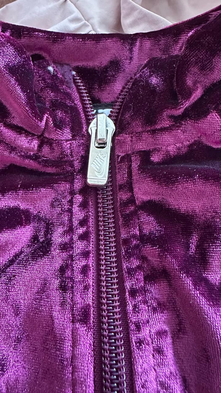 Яркий велюровый костюм от Nike на девочку 💜 Комплект из худи на молнии и брюк — мягкий, тёплый и очень приятный к телу. Глубокий ягодный оттенок с бархатистой текстурой смотрится эффектно и стильно. Удобный крой для активных малышей 👶✨ + плащик Zara в подарок🎁 Артикул: 517699