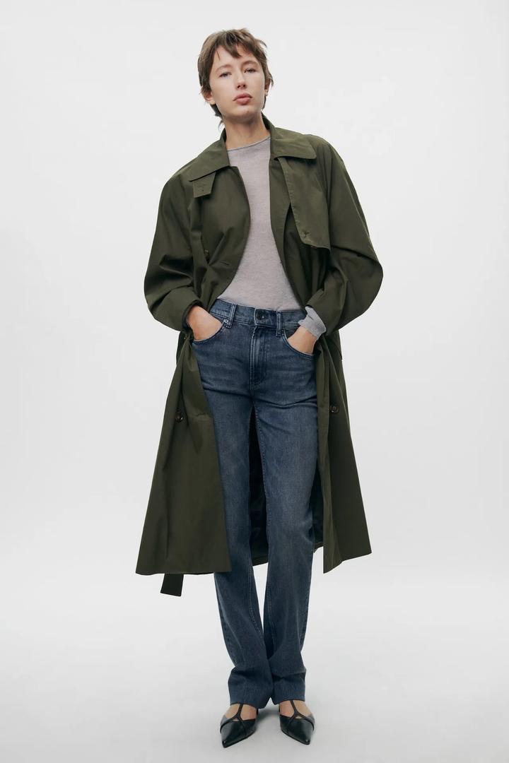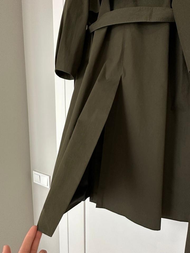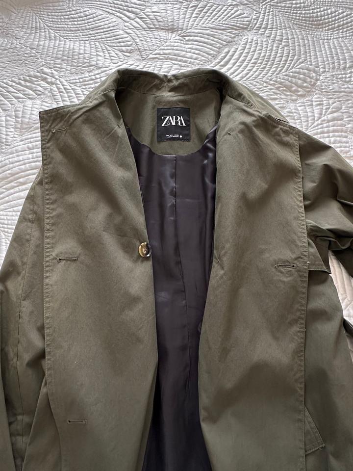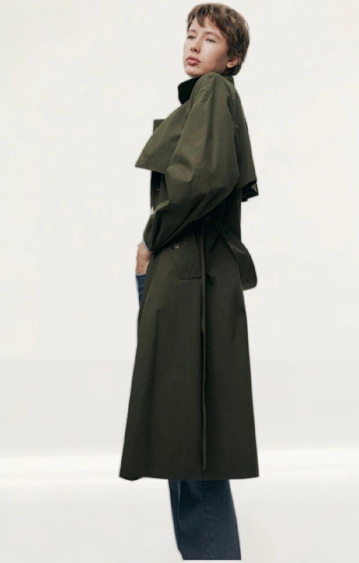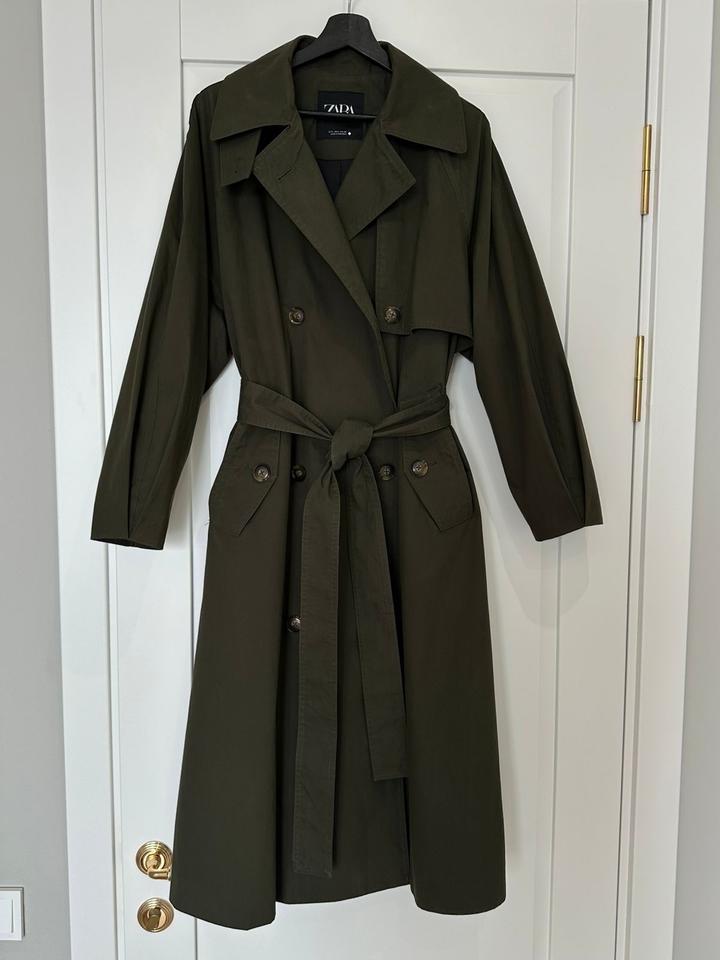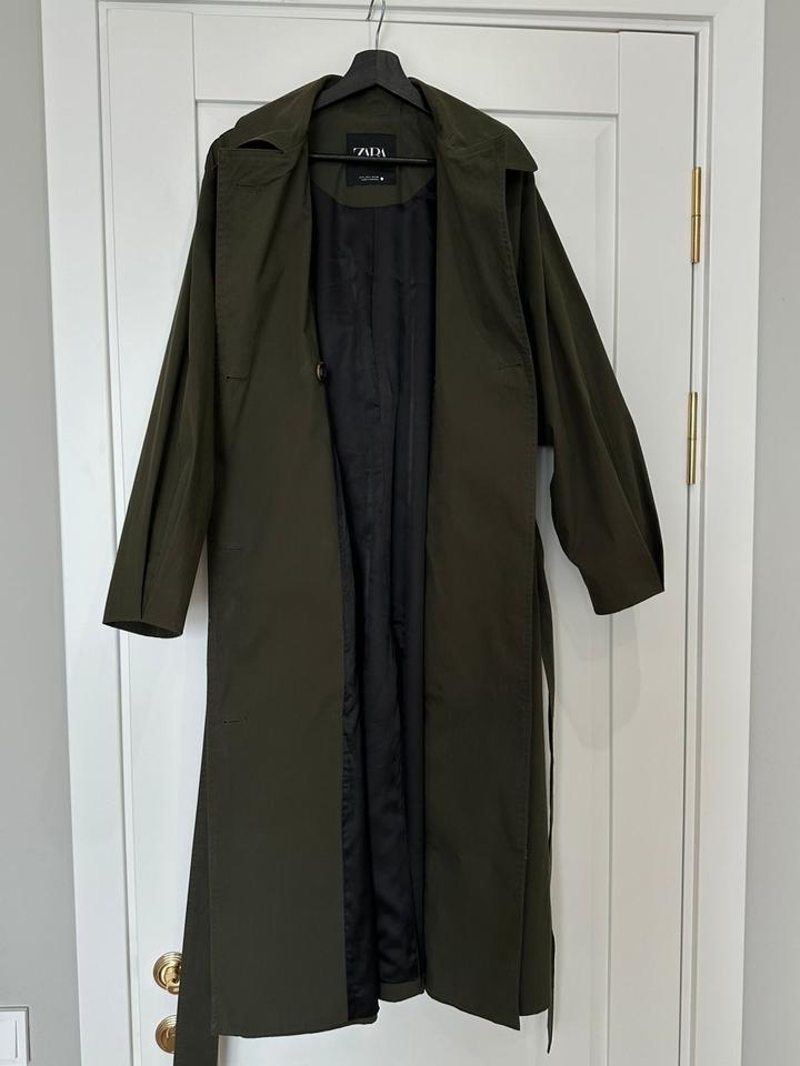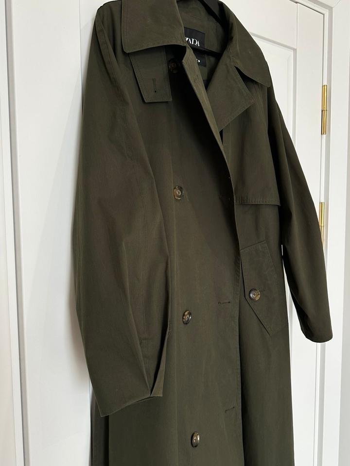 Продам тренч ZARA двубортный, цвет хаки, на подкладе, сзади имеется разрез, спереди два боковых кармана, на поясе. Состав: 80% холопок, 20% нейлон. Состояние идеальное. Размер: L Артикул: 517834