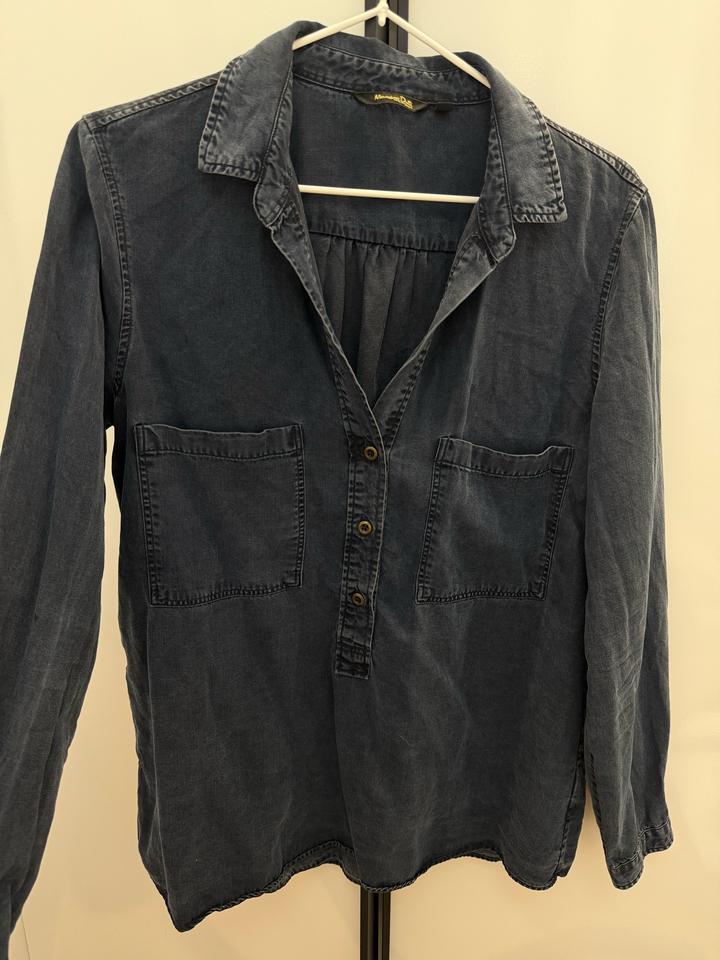 Темно-синяя рубашка под джинсу с потертостями от Massimo Dutti EUR 42, но на мой L хорошо сидит Артикул: 517845