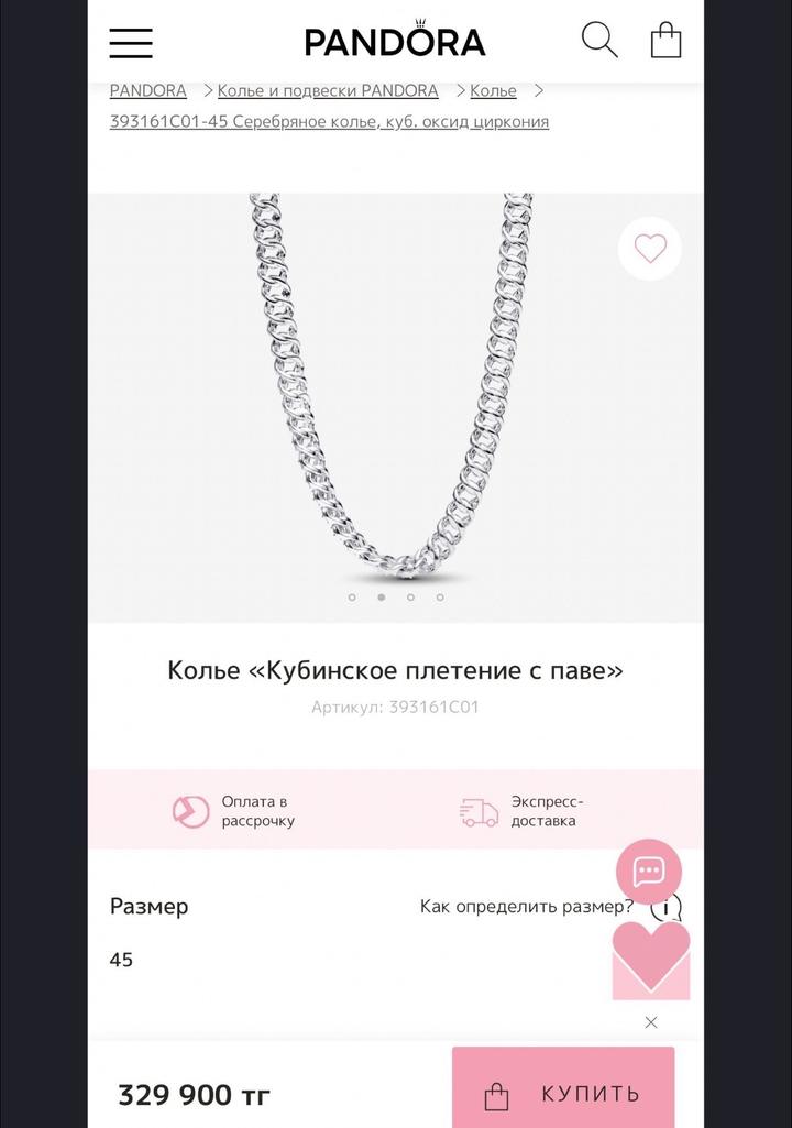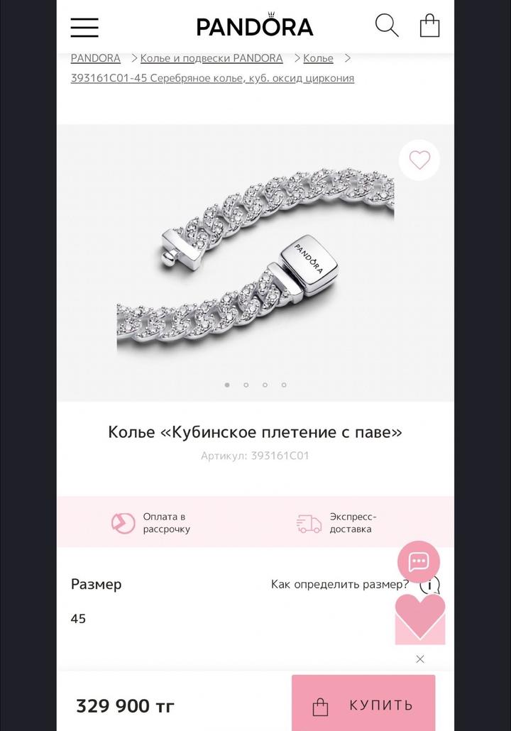 Продам цепочку Pandora, оригинал. Есть коробка и чеки. Покупалась в Меге в официальном магазинє Pandora. Окончательная цена — 180 000 тг Ожерелье с кубинским плетением и паве - яркое украшение, привлекающее внимание. Изготовленное из серебра 925 пробы, оно имеет 45-сантиметровую цепочку, украшенную 690 круглыми кубическими оксидами циркония в закрепке паве для максимального сияния. Идеальное для сочетания с другими украшениями, это колье легко подчеркнет любой образ - от простой футболк Артикул: 517885