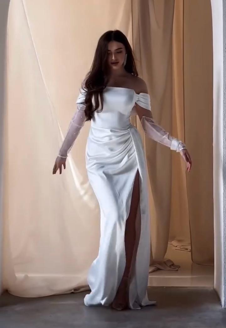 Белое свадебное платье в холодном оттенке (не Айвори), в подарок рукавчики с жемчугом. После химчистки, очень удобное, сзади на шнуровке. Отвечу на все вопросы, пришлю фото и видео. Артикул: 517901