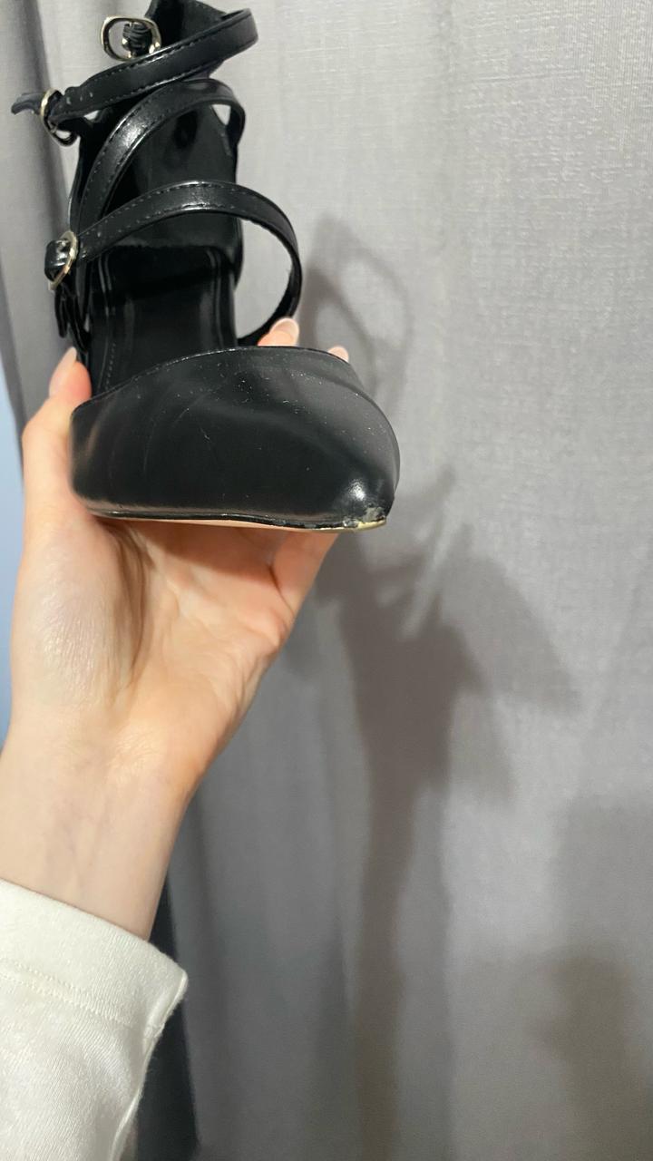 Красивые туфли из экокожи на удобном устойчивом каблуке 9 см. Хорошо подойдут на узкую стопу. Надевала всего пару раз на выставку, сейчас просто стоят. Есть небольшие следы носки, но в целом выглядят аккуратно Артикул: 517924