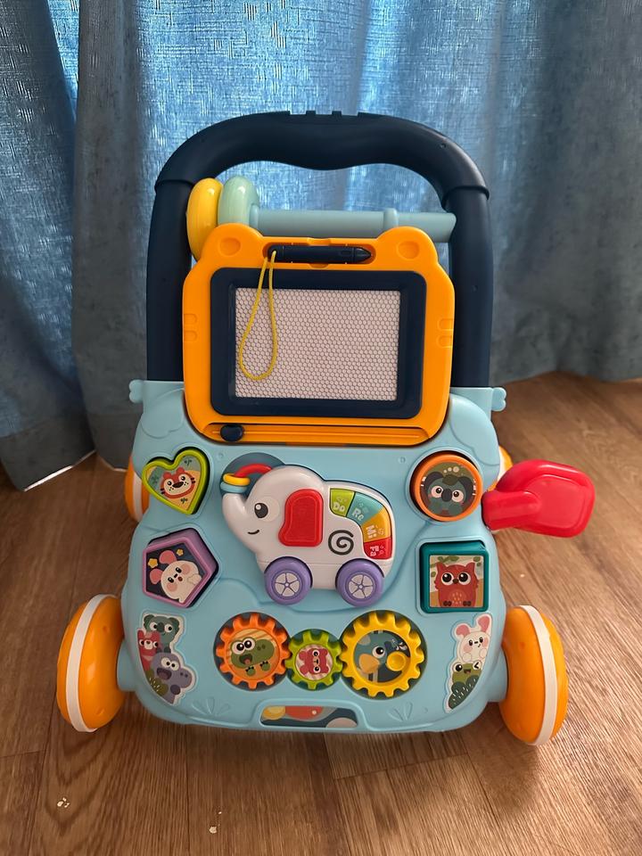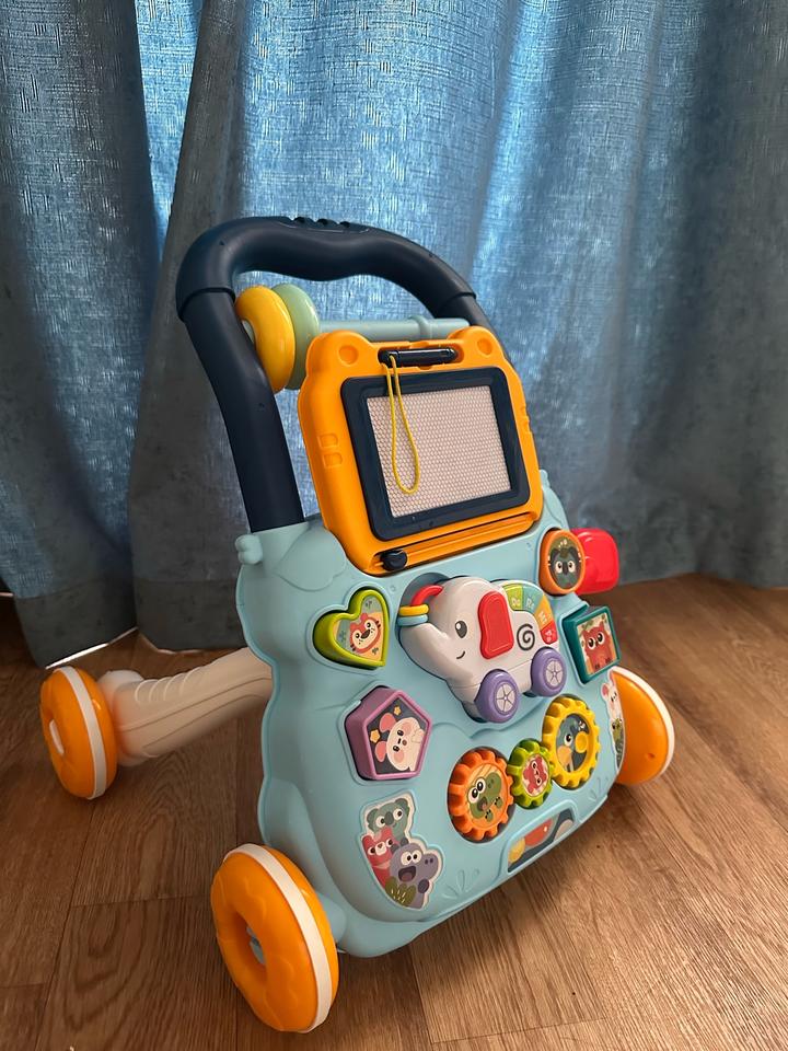 Каталка ходунки, был в использовании только дома. Все детали на месте. Состояние идеальное. Доска для рисования , фигурки сортеры и музыкальный слоник пианино, все рабочее. Артикул: 517946