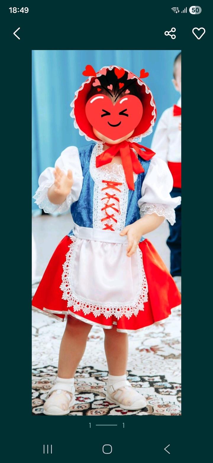 Продам костюм Красной шапочки. На возраст 3-4 года, ростовка 98-104, в отличном состоянии. Артикул: 518010