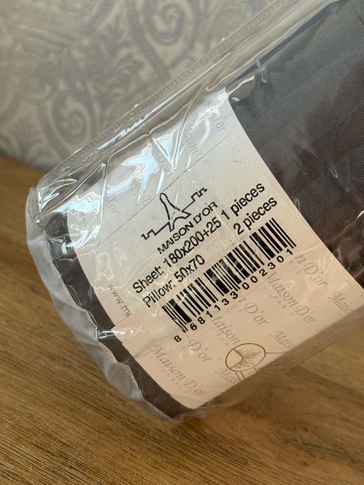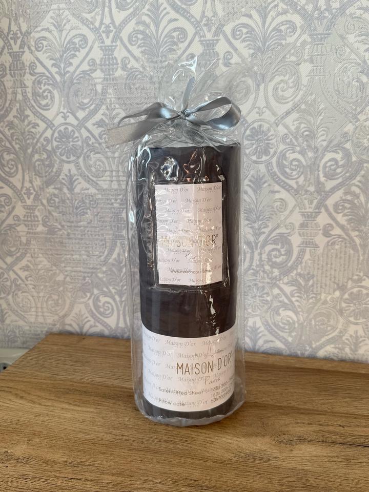 Постельное белье серого цвета. Простыня и наволочки для подушек две штуки. Артикул: 518197