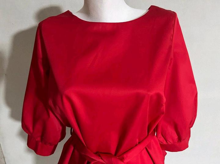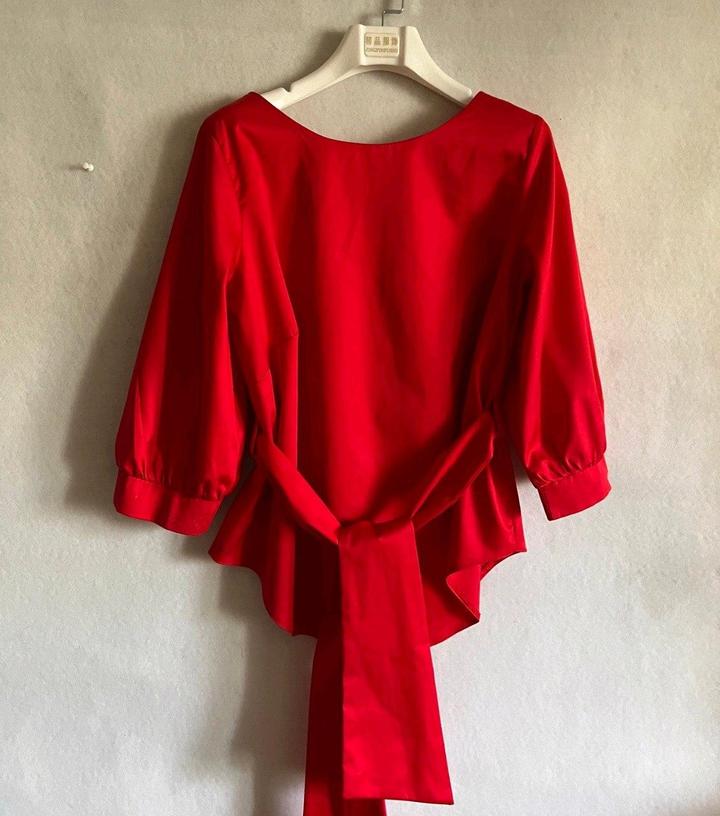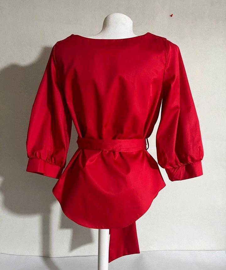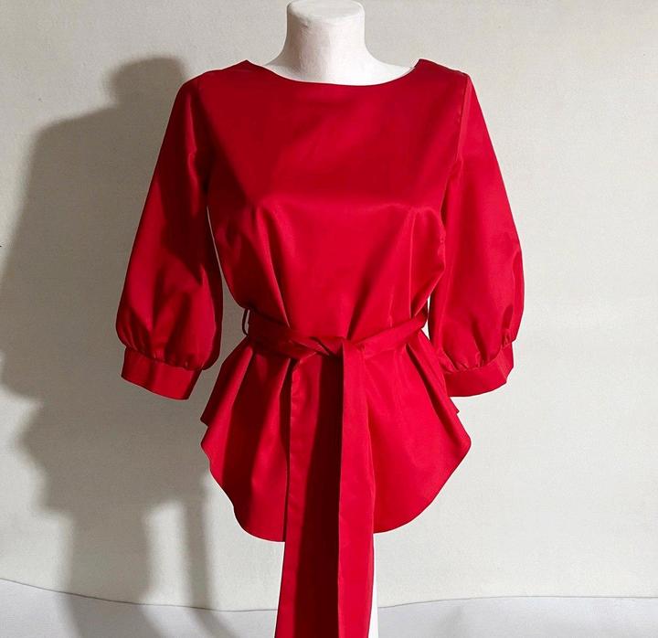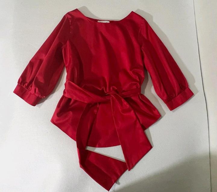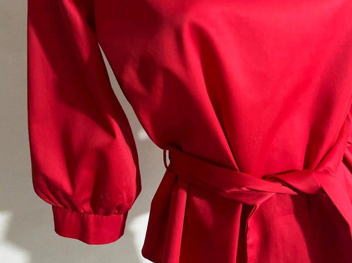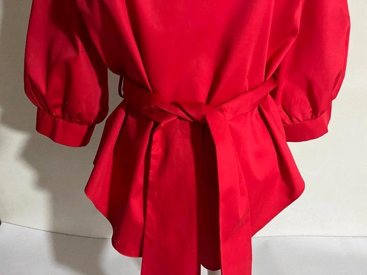 Блуза топ красная с поясом р 46 или между 44 и 46 рукав 3/4 хлопокM