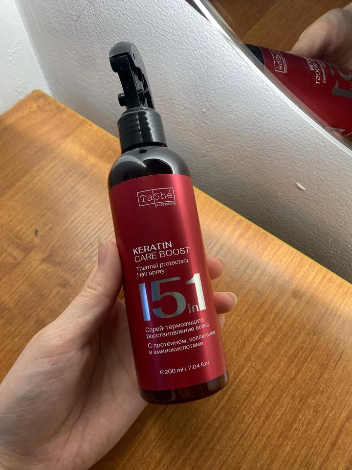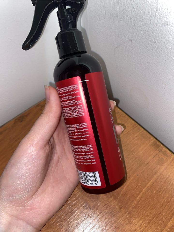 Спрей-тормозащита купила в Золотом Яблоке. Советую купить если вы уже использовали этот спрей и он вам подошел. Мне не подошел, у меня очень тонкие волосы и он их утяжеляет и потеряется объем. Почти новый, пшикала 5-6 раз. На фотке белым отметила уровень остатка спрея во флаконе. Срок до 11 месяца 26-го года Артикул: 518257