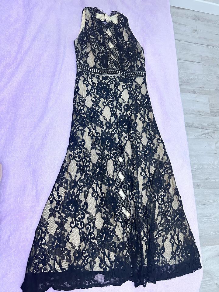 Элегантное вечернее платье миди из кружевной ткани. Приталенный силуэт, высокий ворот, без рукавов. Полупрозрачное кружево с подкладом телесного оттенка, создаёт эффект “второй кожи”. Спереди аккуратный разрез, который добавляет женственности. Очень утончённый и нарядный вариант для мероприятий. Артикул: 518278