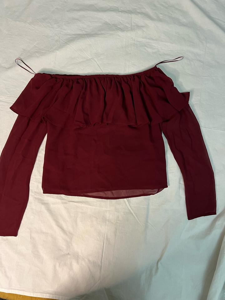 Шифоновая блузка с открытыми плечами и длинным рукавомS/M