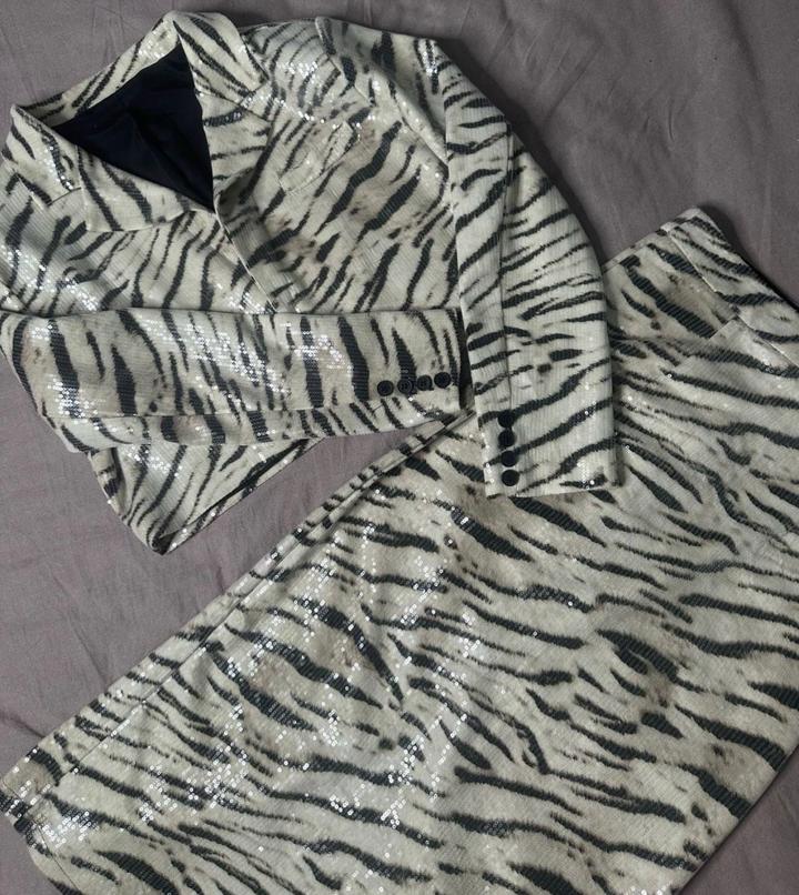 женский костюм размер M 44. Покупали в турецком магазине, надевали всего один раз - состояние новое. Костюм украшен пайетками, красиво переливается, в комплект входит длинная юбка и короткий пиджак. Артикул: 518423