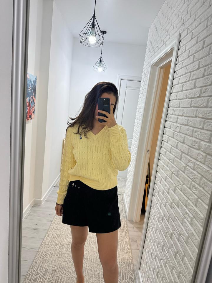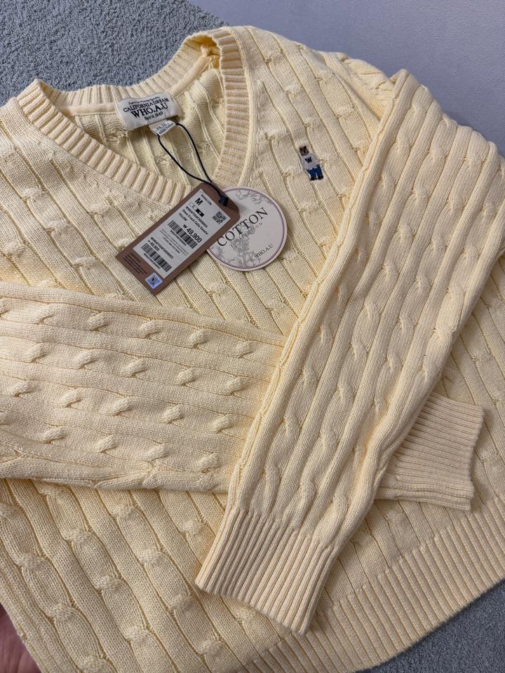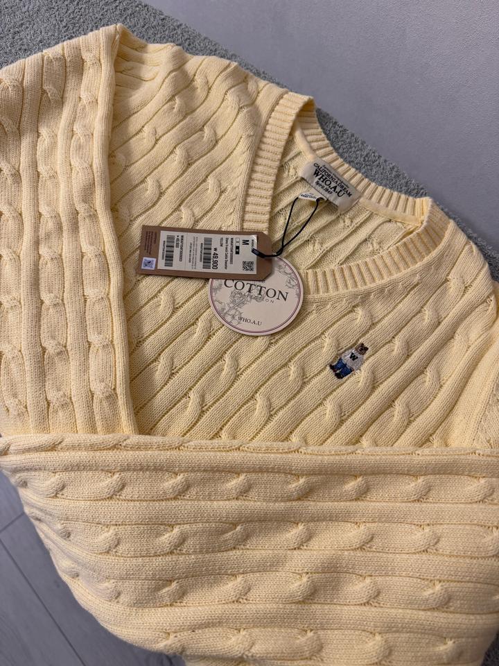 Желтый свитер WHO.A.U с V вырезом из 100% хлопка. Размер М. Оригинал. Выкуплен из Кореи. Новый, с биркой Артикул: 518518