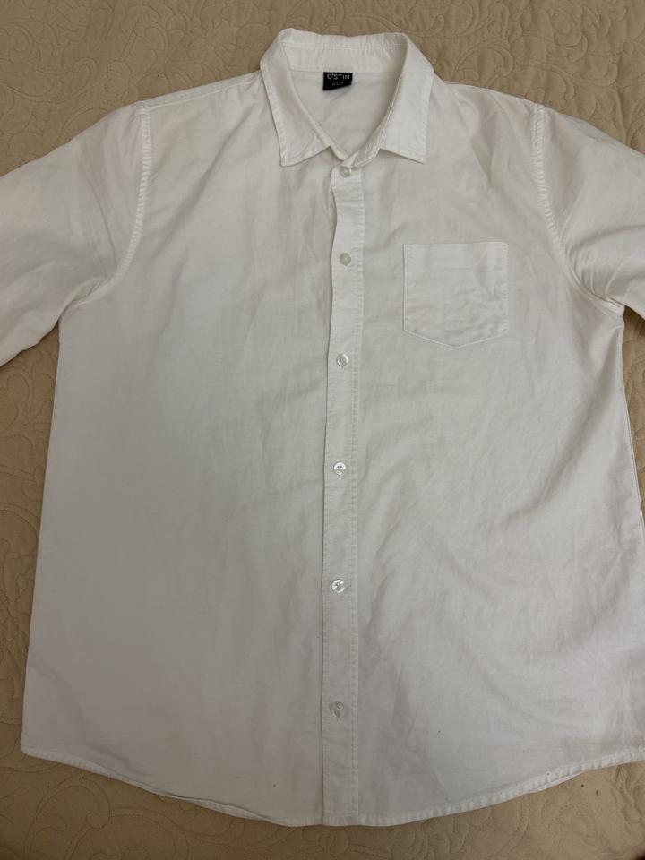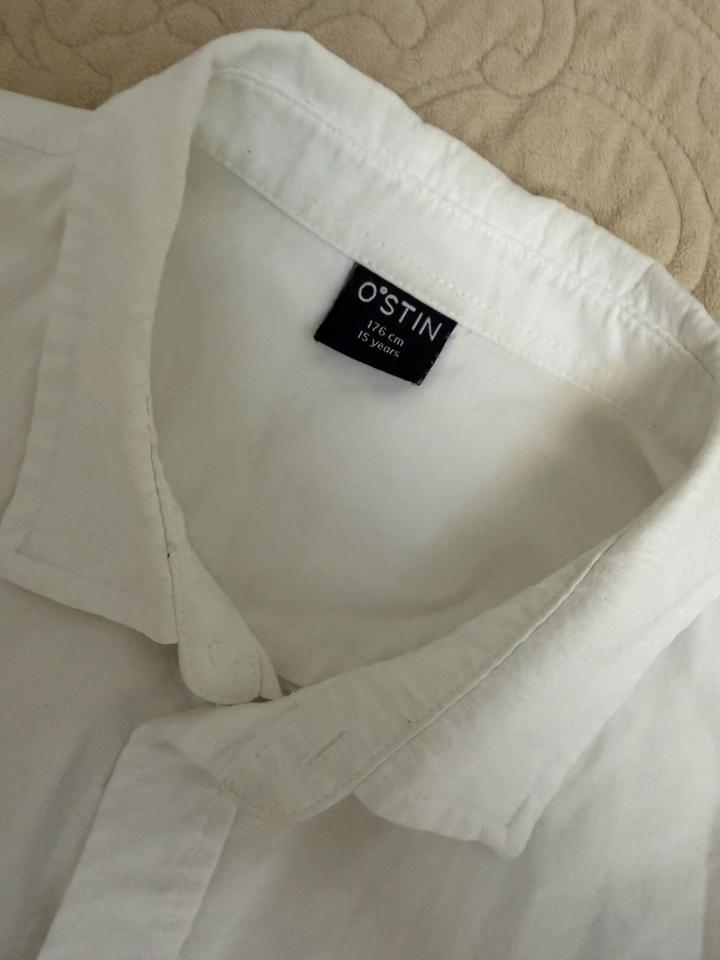 Белая плотная рубашка с длинным рукавом на подростка в хорошем состоянии. Артикул: 518580