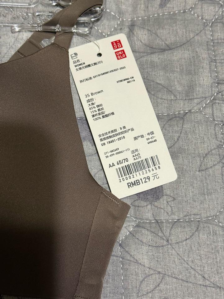 Новый бра от Uniqlo без косточек, мягкая чашка. Цвет капучино , размер 65/70 АА, скорее всего xs. По ошибке пришел не тот размер Артикул: 518654