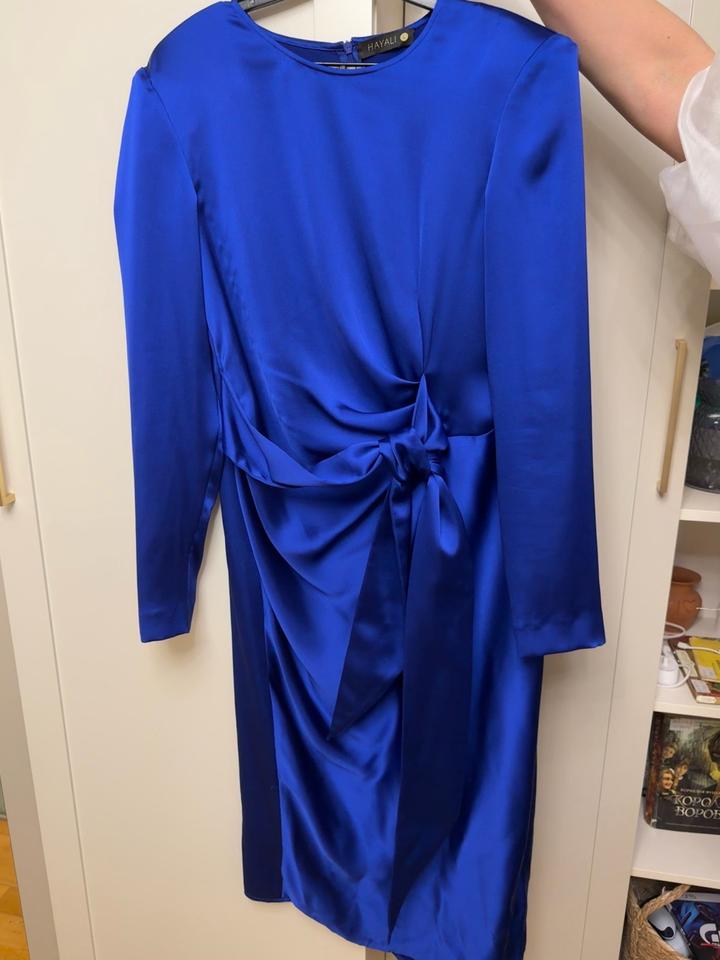 Синее платье из итальянского атласа бренда Hayali. Покупали в Esentai Mall Размер M-L В отличном состоянии. Артикул: 518666