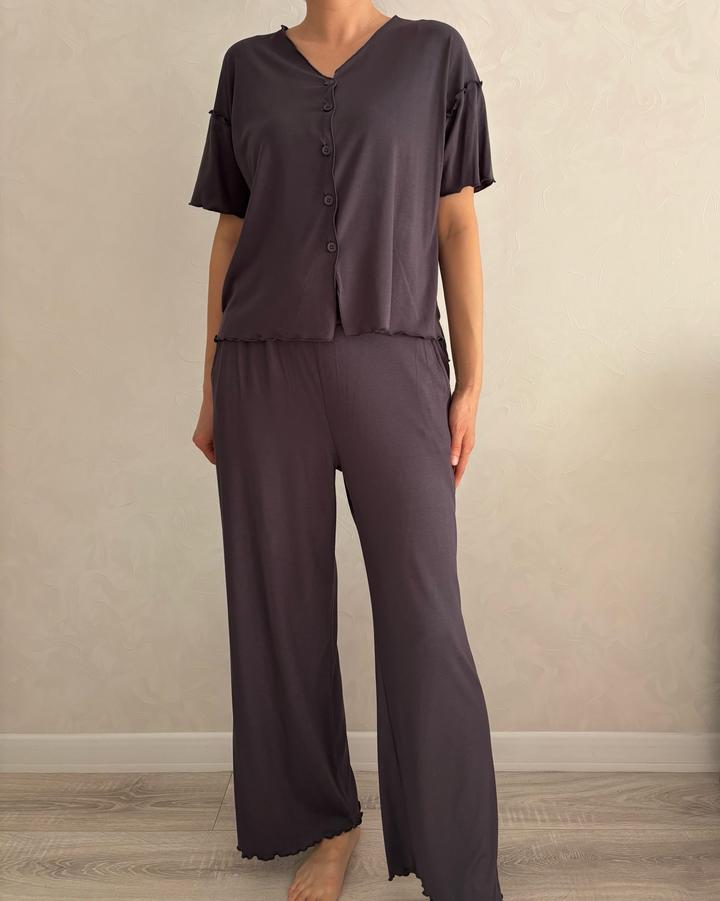 Домашняя одежда/пижама из вискозы. Производство Китай. Новое, в упаковке. Размер единый от M до 2XL. Очень качественный комплект. Штаны с боковыми карманами. Торга нет, распродаю по самым низким ценам. Цвет: графит Артикул: 518735