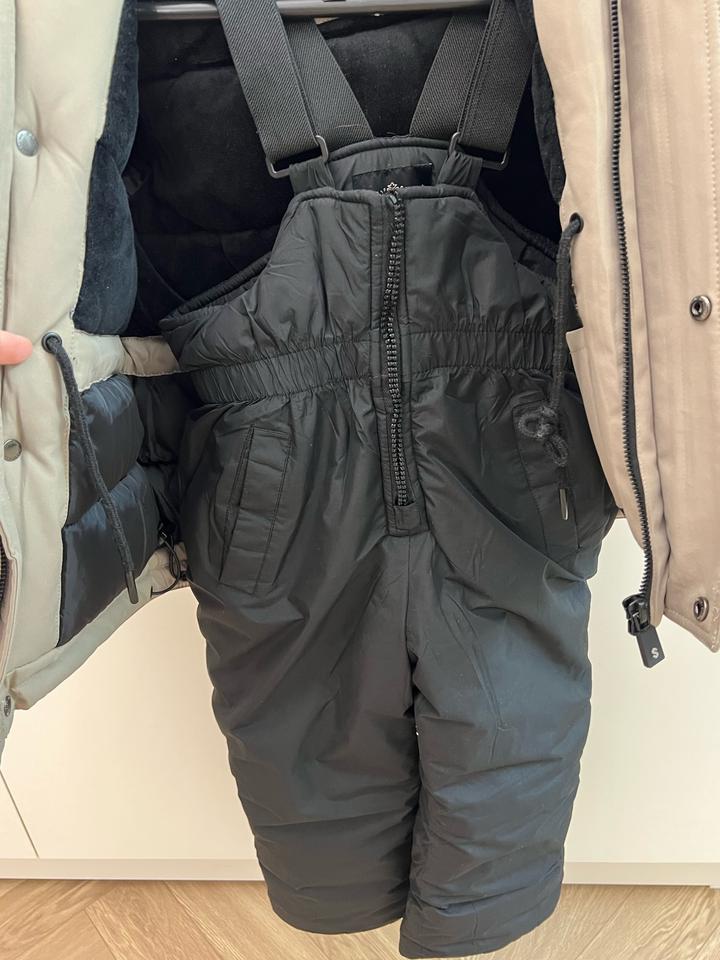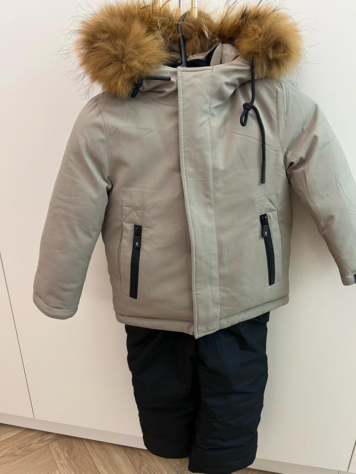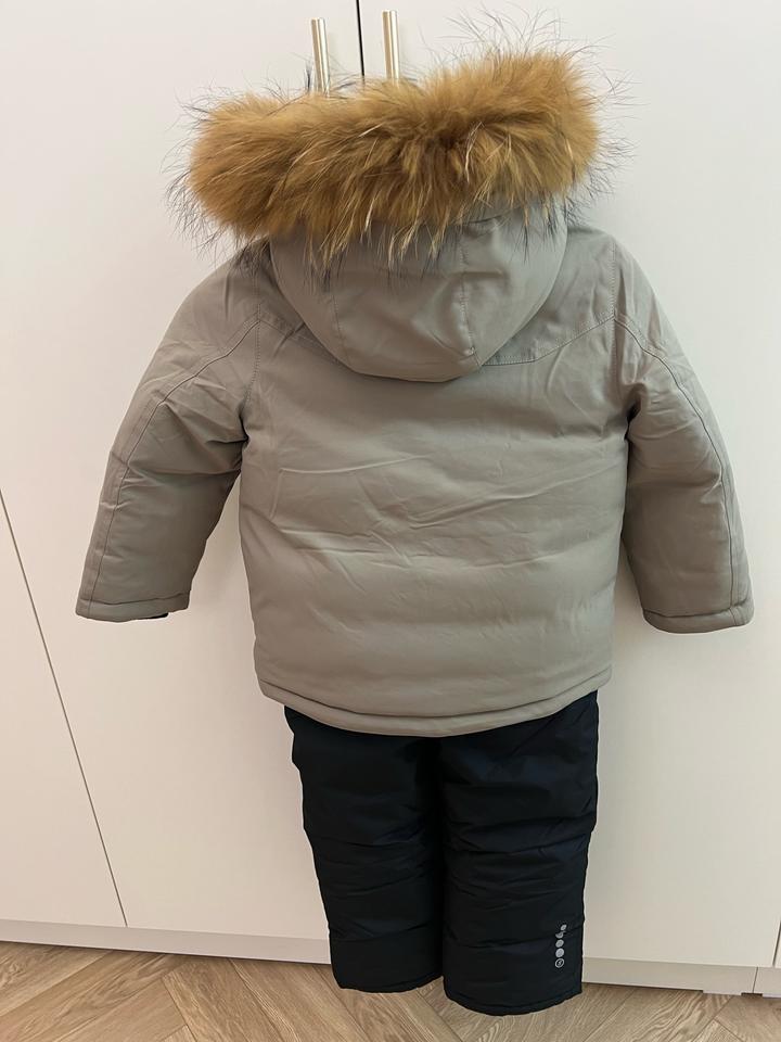 Раздельный комплект верхне зимней одежды. Куртка в идеальном состоянии, почти не одевали. Штанишки полукомбинезон разошелся замок. Очень теплые. Размер 98 подойдет на 2-4 года. Мех с капюшона снимается Артикул: 518800